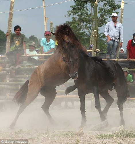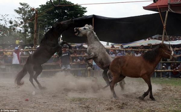 1998 оноос хойш Филиппин улсад морины тулааныг хориглосон байдаг. Гэвч одоог хүртэл зарим тосгодод үндэсний харгис тэмцээнийг зохион байгуулсаар байна. Хоёр азарга хоорондоо гүүний төлөө тэмцэлддэг юм байна.