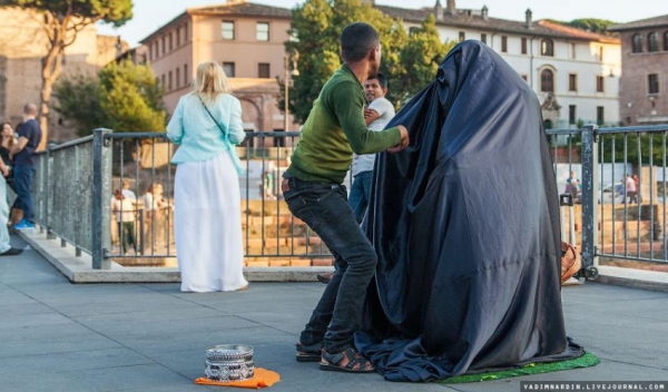 Хэрвээ та аялал жуулчлалаар Ромд явах юм бол гудамжинд газраас хөндийрдөг ер бусын йогчидтой таарах болно. Гэхдээ энэ ид шид биш жуулчдыг татах арга бөгөөд үүнийг хийсэн аргыг зургаас харна уу
