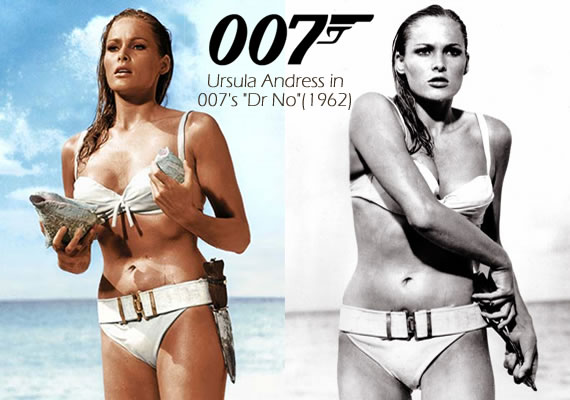 Тэгвэл дараагийн алдартай зүйл бол Урсула Андрессын Жэймс Бондын “Доктор Но” цуврал дээр өмссөн бикини юм.