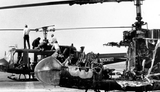 Удалгүй алан хядагчид барьцааны хүмүүсийнхээ хамт Олимпийн тосгоноос автобусаар гарч нисдэг тэргэнд суун Мюнхений Фюрсренфельдбрук дахь цэргийн нисэх онгоцны буудалд иржээ. Тэнд тэднийг Каир руу нисэх Boeing-737 онгоц хүлээж байсан байна. Гэтэл алан хядагчдын толгойлогч Сади хэмээгч нэгнийхээ хамт уг онгоцонд суусан ажээ. Гэтэл гэнэт онгоц дэлбэрснээр тэдний төлөвлөгөө нурлаа. Уг онгоц руу орсон хоёр этгээд энэ нь занга байсныг мэдэнгүүтээ тэр даруй хоосон онгоцноос үсрэн буусан даруйд бүгд цагдаагийнхны эсрэг гал нээж эхлэв.