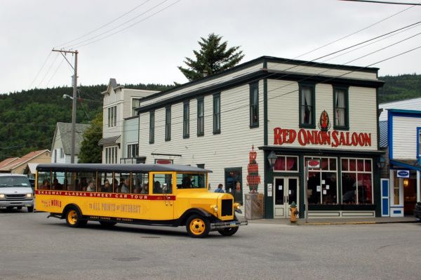 Аляск дахь энэхүү янханы газар 1895 онд байгуулагджээ. Аляскийн Скэгвее хотын энэхүү газар их засварын дараа дахин үүдээ нээлээ. Цагтаа "Red Onion Saloon"-д эрчүүд болгон очиж үйлчлүүлэхийг хүсдэг байсан гэхэд болно. Өдөрт 25 хүнд үйлчилдэг байхад тэндхийн бүсгүйчүүд жинхэнэ “алтанд умбаж” байжээ. Өдгөө "Red Onion Saloon" 115 нас хүрч байна. Тэнд галт зэвсэг болон танхайрал хориотой байсан аж. Нэг давхартаа ууж идэн, хөнгөн зоог барьдаг байсан бол хоёр давхар биеэ үнэлэгч охид бүсгүйчүүд үйлчлүүлэгчээ өөрсдийн тав тухлаг өрөөндөө хүлээн байдаг байв. Жижигхэн өрөө болгон нь гэрийн тав тухыг үйлчлүүлэгчдэд мэдрүүлнэ. Ер нь бол тэндхийн бүсгүйчүүд доод давхартаа бууж ирэх нь ховор байлаа.