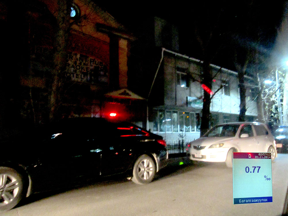 Улаанбаатар хотын нэгэн баасан гаригийн үдшийн энгийн тохиолдох явдлын нэгхэн хэсэг. 3,4 дүгээр хорооллын ард, 13 дугаар сургуулийн хойд талын зам дээр Баянгол дүүргийн замын цагдаагийн албан хаагчид, жолооч нарт шалгалт хийж байхад бид очлоо. Иргэдийн хэлж заншсанаар Бичил хорооллын урд талын зам үдшийн 23:00 цагийн үед замын хөл хөдөлгөөн, ачаалал өдрийнхөөс өөрчлөгдсөн, өөрөөр хэлбэл багассан зүйл байсангүй. Биднийг очиход түр саатуулаад байсан дээрх жолооч 27 настай, эхнэр хүүхдийн хамт амьдардаг. Эрхэлсэн тодорхой ажилгүй учраас оройдоо таксинд явж хоногийн хоолоо болгодог гэсэн юм. Гэвч түүнээс архи нэвт үнэртэж байсан гэдгийг дахин хэлье. “Өргөө” кино театрын урдаас хүн аваад хойшоо эргээд л баригдсан бололтой. /өөрийнх нь хэлж байгаагаар/ Гэтэл түүнийг согтууруулах ундаа хэрэглэснээс хойш хэдий хугацаанд машин барьсаныг хэн ч тодорхойлж чадахгүй. “Түүний хаагуур, юу хийж явах нь өөрийнх нь эрх боловч согтуугаар жолоо барьж, зорчигч тээвэрлэнэ гэдэг санаанд багтамгүй зүйл” хэмээн бодогдож байлаа.
