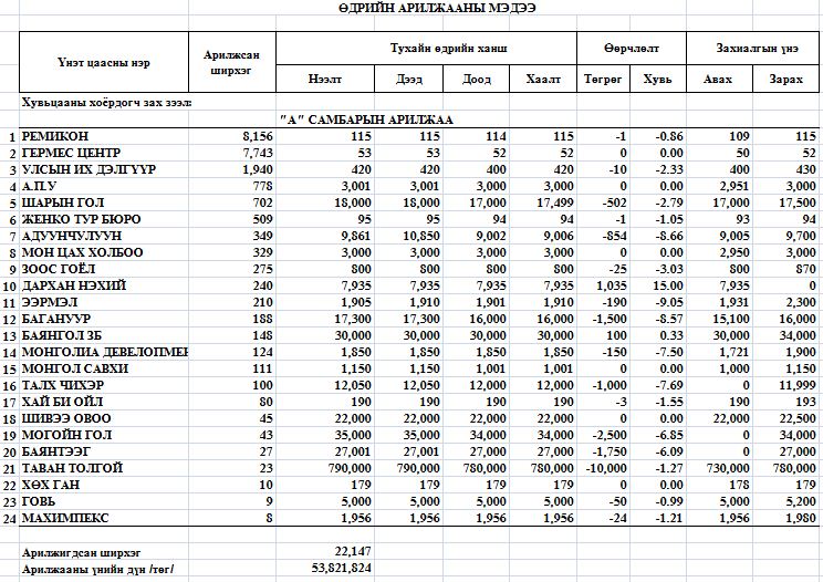 Нийт арилжигдсан ширхэг 22,460
