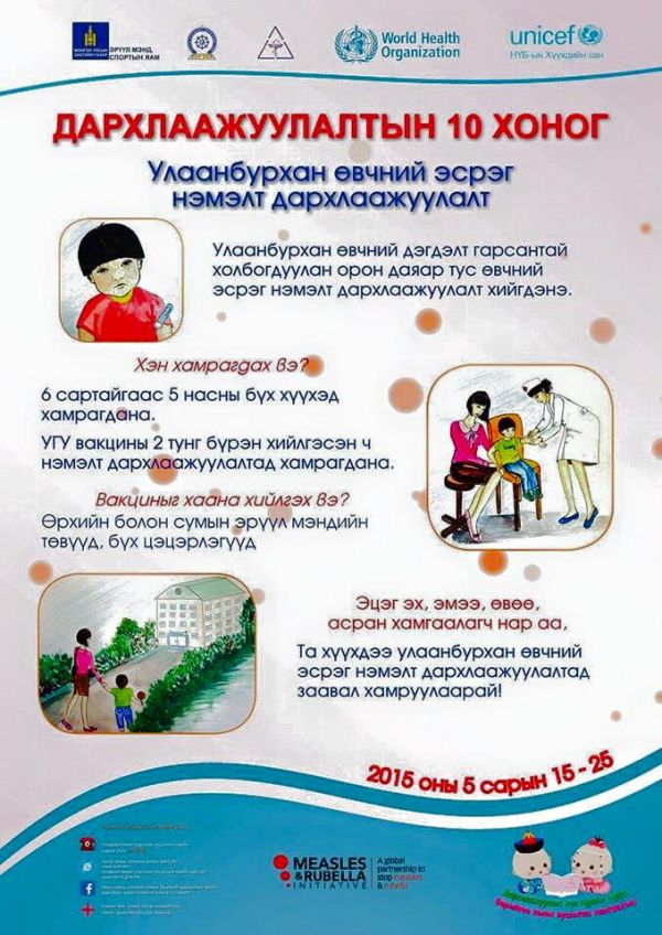 Улаанбурхан өвчний тархалт хот, хөдөөгүй газар аваад байгаа. Тэгвэл энэ өвчний эсрэг хүүхдүүдэд орон даяар дархлаажуулалт явуулах гэж байна. Тиймээс эцэг эхчүүд та бүхэн хүүхдүүдээ идэвхитэй хамруулаарай. Дархлаажуулалт энэ сарын 15-25-ны өдрүүдэд болно.