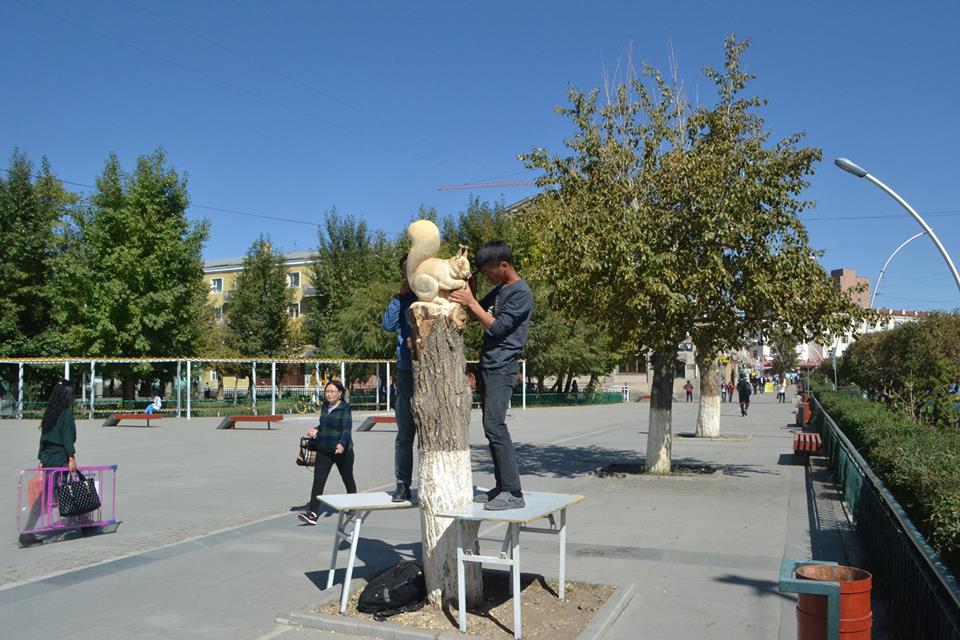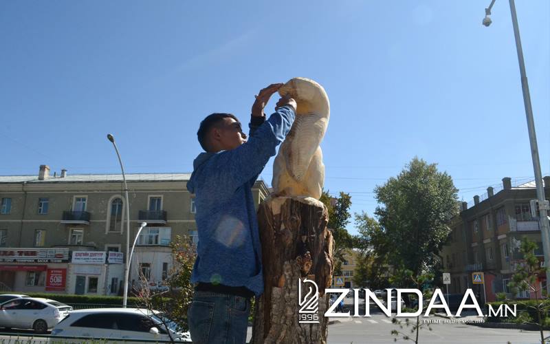 Чингэлтэй дүүргийн дөрөвдүгээр хороонд байрлах Анкарагийн гудамж, Турк улсыг үндэслэн байгуулагч Ататуркийн нэрэмжит ерөнхий боловсролын тавдугаар сургуулийн орчимд хэсэг оюутан “хатсан” улиас модон дээр амьтан урлаж байна. Хэд хоногийн өмнөөс сошиалд “амьд модыг тайрч, амьтан сийлбэрлэж байна” гэсэн шүүмжлэл өрнөсний мөрөөр сурвалжилсан юм. Чингэлтэй дүүрэг, СУИС-ийн хамтын ажиллагааны хүрээнд Дизайн, дүрслэх урлагийн сургуулийн дөрөвдүгээр дамжааны оюутан Г.Ням, С.Мөнхбаяр, Намхайжамц, Ө.Цэдэв нар багш С.Цэнгэлийн удирдлагаар дээрх моднуудад сийлбэр хийж байгаа ажээ. Дэргэдүүр нь өнгөрөх хүмүүс зогсч, сонжиж, зарим нь зургийг нь авна.