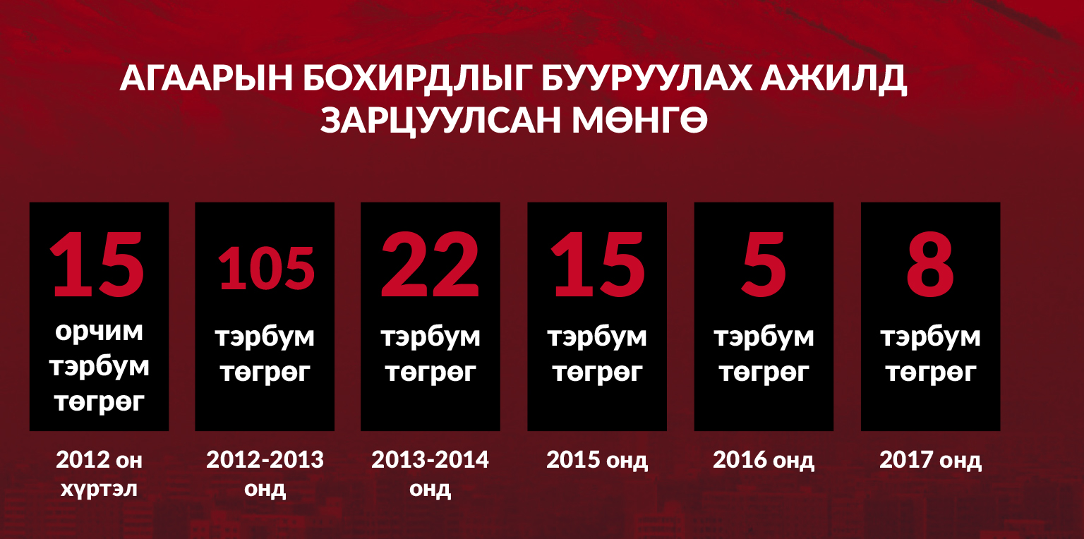 АГААРЫН БОХИРДЛЫГ БУУРУУЛАХ АЖИЛД ЗАРЦУУЛСАН МӨНГӨ