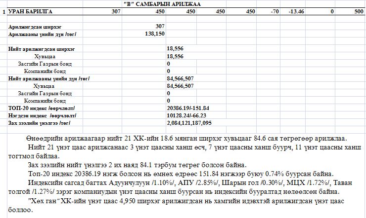 МХБиржийн 2011.05.24-ний арилжааны мэдээ