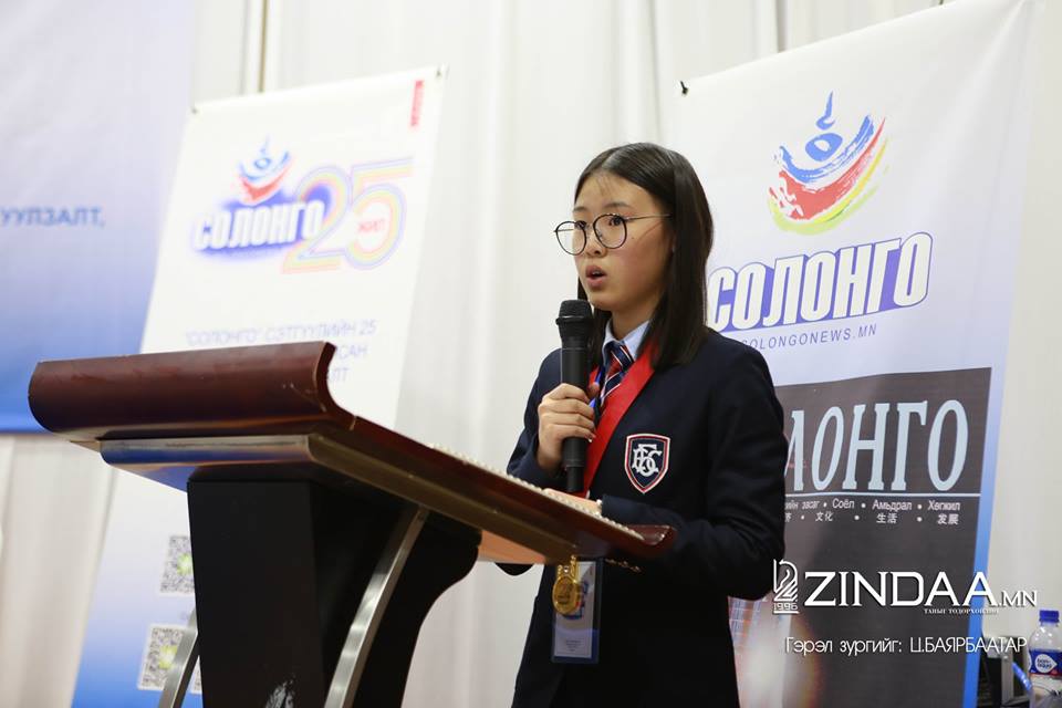 Солонго мэдээллийн төвд анхаарлаа хандуулдаг уншигч, үзэгч та бүхэндээ маш их баярлалаа. Яг одоо явагдаж буй Солонгын энэхүү өдөрлөг дөрөв дэх жилдээ зохион байгуулагдаж байна. Энэ удаагийн арга хэмжээнд бид Солонго хэвлэл мэдээллийн форум зохион байгуулж байна. Мөн Ерөнхий боловсролын сургуулийн сурагчдын хүрээнд зохион бичлэгийн уралдаан хоёр дахь удаагаа зохион байгууллаа. Ийм аргаар бид “Солонго” сэтгүүлийнхээ 25 жилийн ойг уншигчдынхаа дэргэд нь ирж тэмдэглэж байгаа юм. Энэхүү сэтгүүл нь Монгол, Хятад орны нөхөрлөлийн гүүр болон ажиллаж байна. Удаан жилийн үнэн сэтгэлтэй энэхүү сэтгүүл гэдгийг форумд оролцсон зочид төлөөлөгчдийн үгээс сонслоо. Бидний ямагт баримталдаг зарчим бол уншигчид юу хүсэж байна вэ гэдэг. Мөн сэтгүүлийн байр суурь бодол баримтлалыг авч явах нь хамгийн нэн тэргүүний чухал зүйлийн нэг. Тиймээс ийм арга хэмжээг жил бүр зохион байгуулах, харилцан дасах, өөрсдийгөө таниулах, гэх мэт зүйлийг эрхэм зорилгоо болгож байна. Өнөөдөр та бүгдийг бидний 25 жилийн ойн баярт хүрэлцэн ирж бидэнтэй баяр жаргалыг маань хуваалцаж буйд гүнээ талархаж байна.