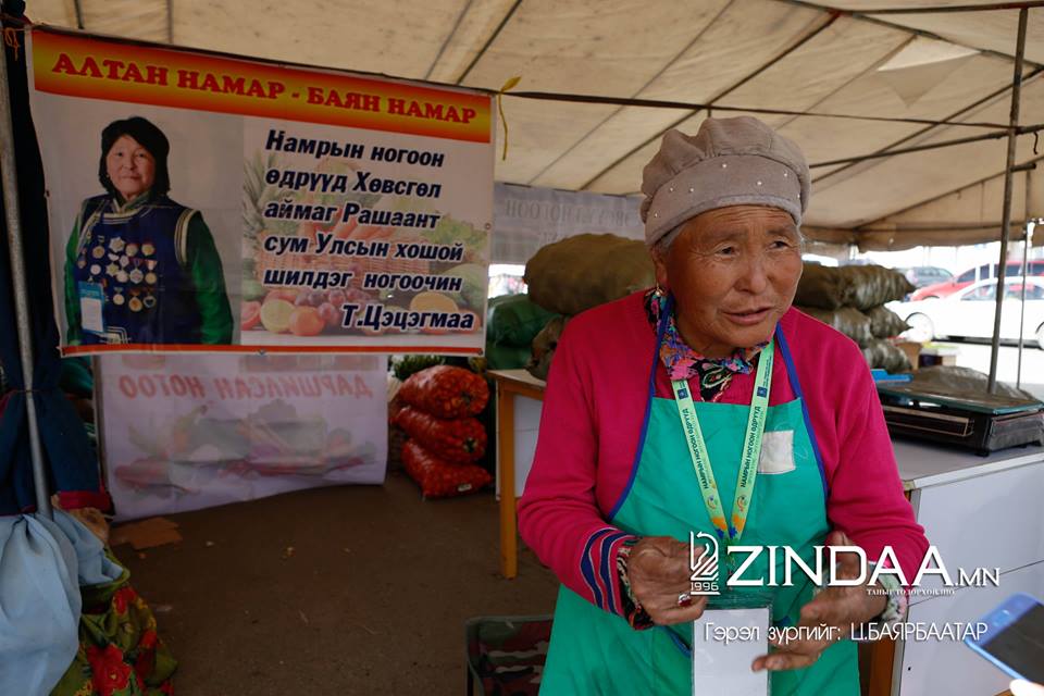13 дахь намрын ногоон өдрүүдтэй золгож буй өндөр настан Улсын хошой шилдэг ногоочин Т.Цэцэгмаа "Би энэ арга хэмжээнд Хөвсгөл аймгийн Рашаант сумаас 13 дахь намартаа оролцож байна. Өнөөдөр “Намрын ногоон өдрүүд” үзэсгэлэн худалдаанд Хөвсгөл аймагт ургадаг Чаг мөөг, Аарц хөмөөлтэй хатаасан ургамал, шинэхэн ургаж буй жимсээрээ оролцохоор ирсэн. Жил ирэх тусам энэхүү үзэсгэлэн худалдаа улам өргөжин тэлсээр байгаад миний бие сэтгэл хангалуун байх боллоо. Нэг үеэ бодоход үндэсний үйлдвэрлэл, үндэсний бүтээгдэхүүнээ дэмждэг олон хүмүүс нэмэгдсээр байгаа нь миний хувьд их тааламжтай байна."