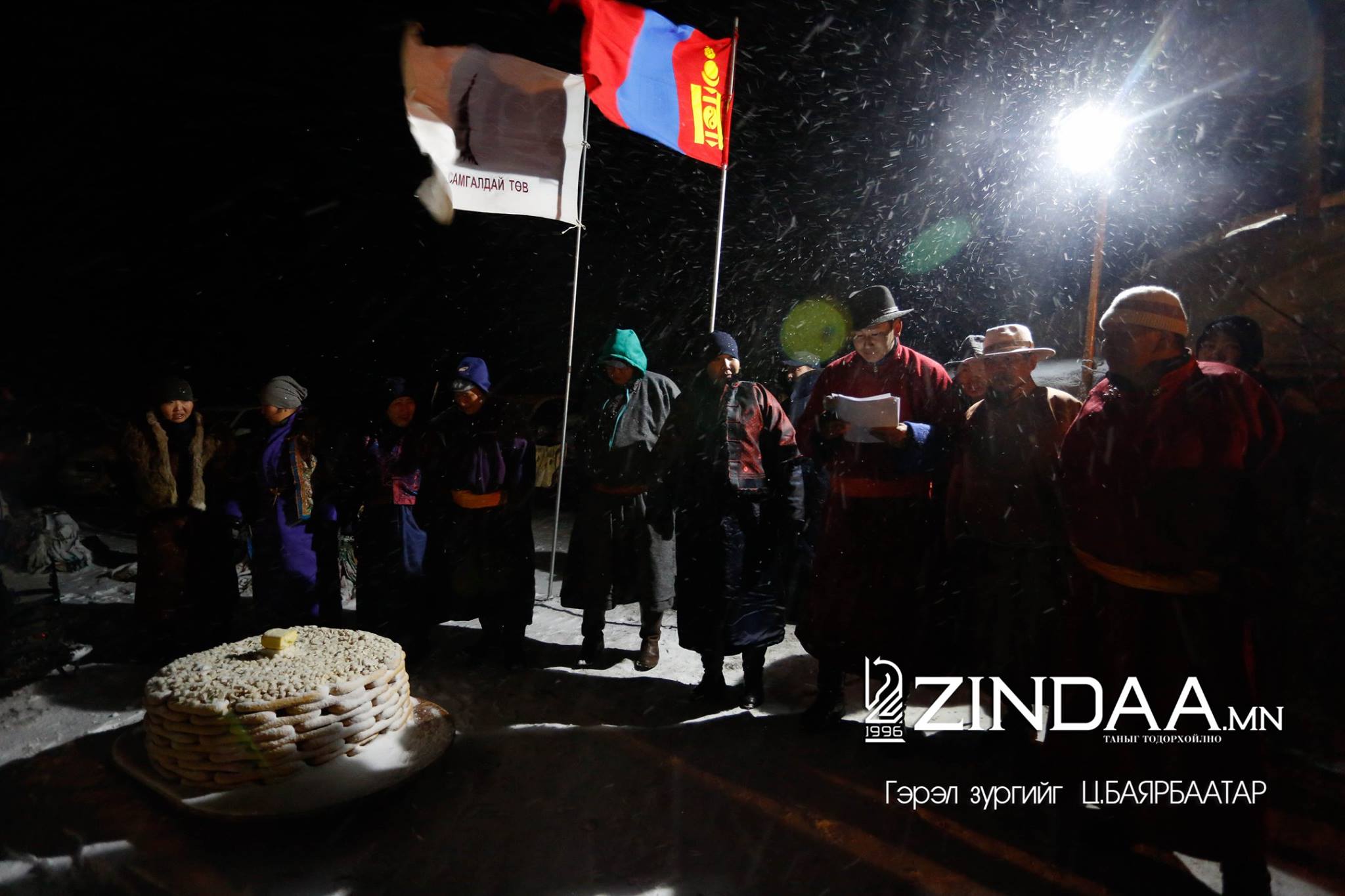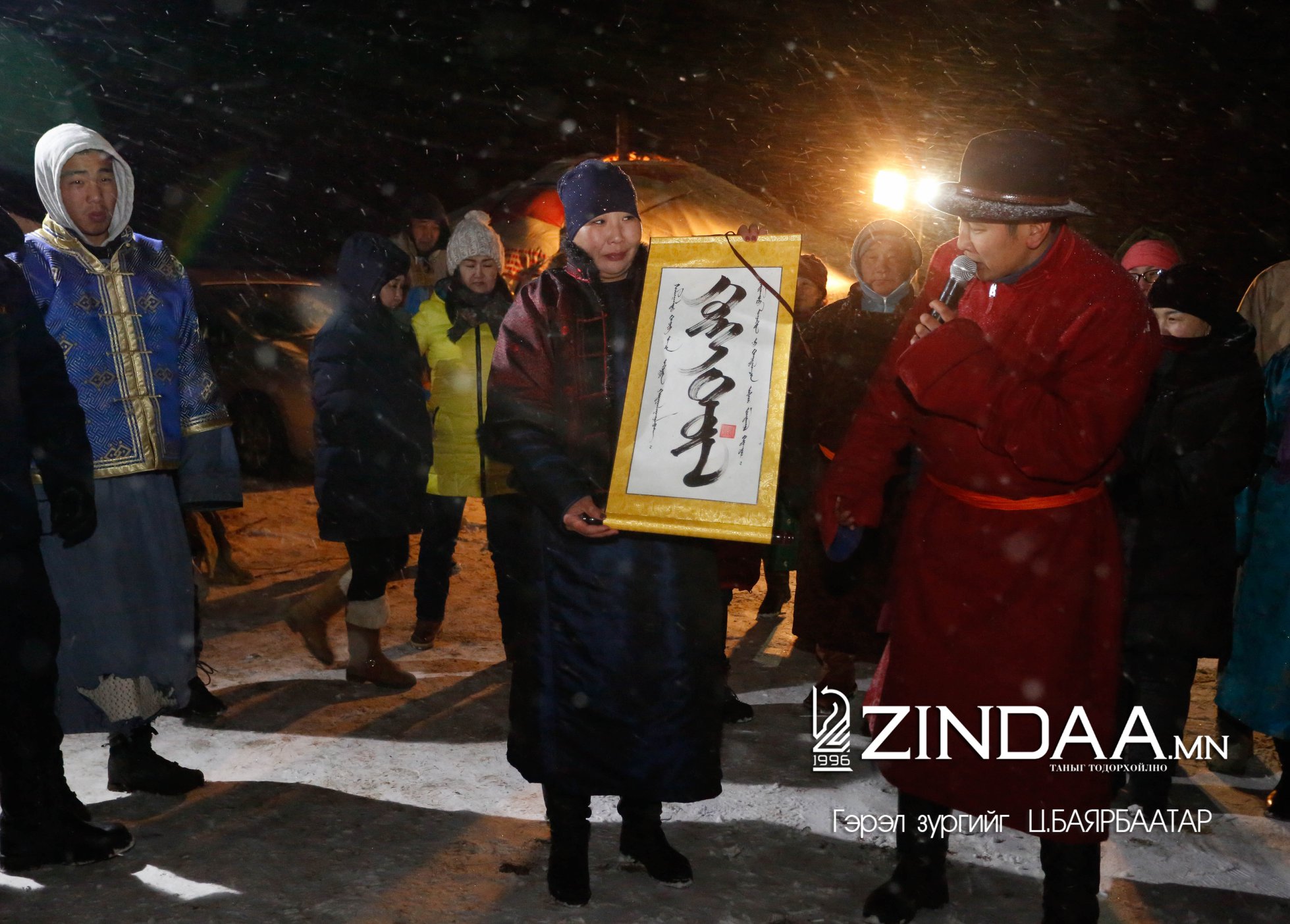 "Бид хуран цугларахдаа хур бороотой, хурц нартай, цасан шуургатай, шороон шуургатай байсан ч тэнгэрийн аясыг харалгүй товлосон цагтаа үйл ажиллагаагаа явуулдаг хүмүүс билээ. “Дэлхийн тэнгэр шүтлэгтний нэгдсэн холбоо”-ны хамт олон бид “Самгалдай” төвийнхөө тахилгуудад оролцож, хамтарч үйл хийгээд олон жил болж байна. Сүүлийн 10,20 жил хамтдаа зүтгэж байгаа нийт удган, зайрангууд, тэнгэрийн улаач нартаа баяр хүргэе. Та нар бол тусгаар тогтнол, газар шороо, түмэн олныхоо төлөө өөрсдийн өчүүхэн биеэ золиосолж явдаг тийм сайхан хүмүүс шүү. Бидний хийж байгаа өнөөдрийн энэ үйл зөвхөн галаа тахиад зогсохгүй, газар газраас ирсэн олон түмнийхээ заяа буянг даатгаж, замбуутивдээ сайн сайхан явахыг хүсэж, ерөөж хийж байгаа том үйл. Мөн нөгөө талаараа Монголчууд хоорондоо эвлэлдэн нэгдэхийн эхлэл бол бидний энэ үйл ажиллагаа юм. Олон аймаг, сумаас хүмүүс энд ирсэн байна. Та бүхэн маань монгол түмнийхээ төлөө, хоорондоо эвлэлдэн нэгдэхийн төлөө, заяа буянаа даатгахын төлөө, дэлхий дахинд дарийн утаа үнэртүүлэхгүй байхын төлөө, улс орон маань дэвжин дээшлэхийн төлөө галын их тахилгад ирсэнд баяртай байна" хэмээсэн юм.
