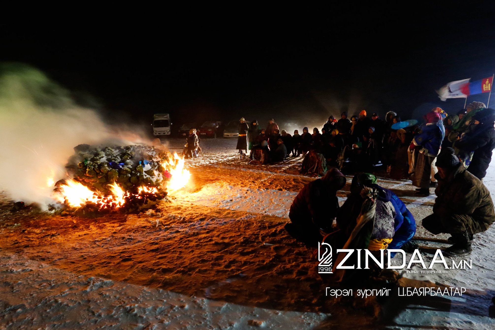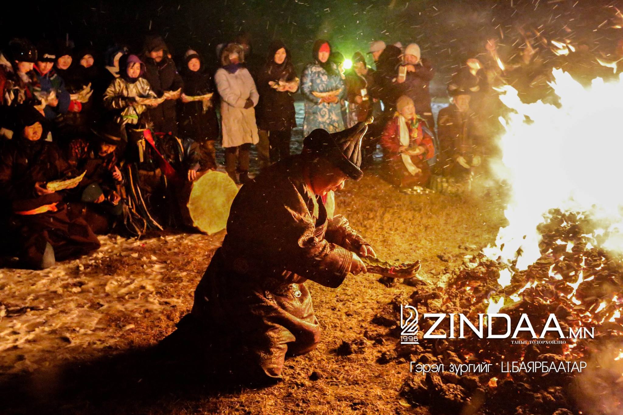 Ийн галын тахилга албан ёсоор эхэлж айл өрхүүд хонины өвчүүгээ хүсэл бичсэн цаасны хамт галдаа өргөлөө. Галыг ариусган тахих нь бөөгийн ёсонд тухайн айлыг мөнх хөх тэнгэрт мэдүүлж, эцэг өвгөдийн буяныг дуудаж өршөөл ивээлдээ багтааж, айл гэрийг мандан бадраах бэлэгдэлтэй. Гал голомт нь сэвтэх хийгээд бузарлагдвал тухайн айл өвчин зовлонд нэрвэгдэж, ажил үйлс нь бүтэхгүй, хэрүүл тэмцлээр дүүрж, өрх гэр өөдөлдөггүй гэнэ. Гал голомт цэвэр ариун байвал өвчин зовлон холуур тойрч, эд мөнгө хуран цугларч энх тунх амьдардаг. Өрх, гэр бүлийн өөдлөн дэвжих анхдагч эх сурвалж нь гал түүний дээш бадамлан асах дөл аж. Галын тахилгын төгсгөлд хүрэлцэн ирсэн удган зайрангууд гал төр төвшин, түмэн олон амгалан байхын төлөө бөөлж, илүүрийн үйл хийв. Илүүрийн үйл нь дэв бузар, муу бүхнийг галын тэнгэрээр ашиглан хөөн зайлуулах шидтэй. Түүнээс гадна галаас муу бүхэн эмээдэг учир галд улайссан илүүрээр онгод тэнгэр бас хүч авдаг тухай тэргүүн түшээ Д.Батчулуун тайлбарлан, өгүүлж байлаа. Мөн хүрэлцэн ирсэн айл өрх, зочид төлөөлөгчдөө буцахад нь есөн есийн 81 ул боовны хишиг тарааж, айл өрхүүд галын их тахилгын үнсийг гал голомт руу гаа авч явж хүндэтгэлээ илэрхийлэв.