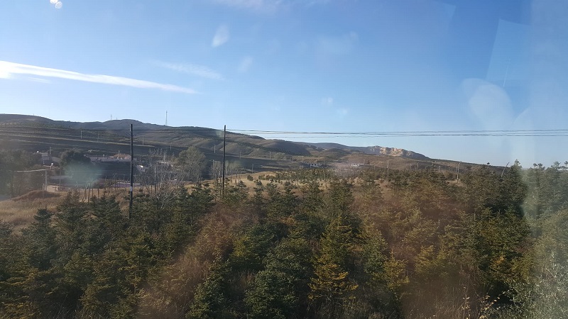Биднийг Эрээн хотоос ӨМБИС-ийн төлөөлөгч буюу манай ангийн багш тосч аван, Хөх хот руу автобусаар явлаа. 100 км/цагаас дээш хурдтай явах автобусны цонхоор харж явахад мод тарихаас эхлээд ногоон байгууламжийг алхам тутамд хийжээ. Уулыг нүхэлж зам тавьж байгаа харагдана. Ингэхдээ газар хөрснийхөө унаган байдлыг алдагдуулж, улаан тэрм, хөндий нүх болгож үлдээлгүй, тэр бүгдэд бут сөөг тарьж, зүлэгжүүлж, нөхөн сэргээжээ. Газар тариалангийн бүс гэдэг нь хаа сайгүй харагдах эрдэнэ шишийн талбайгаас илхэн харагдана.