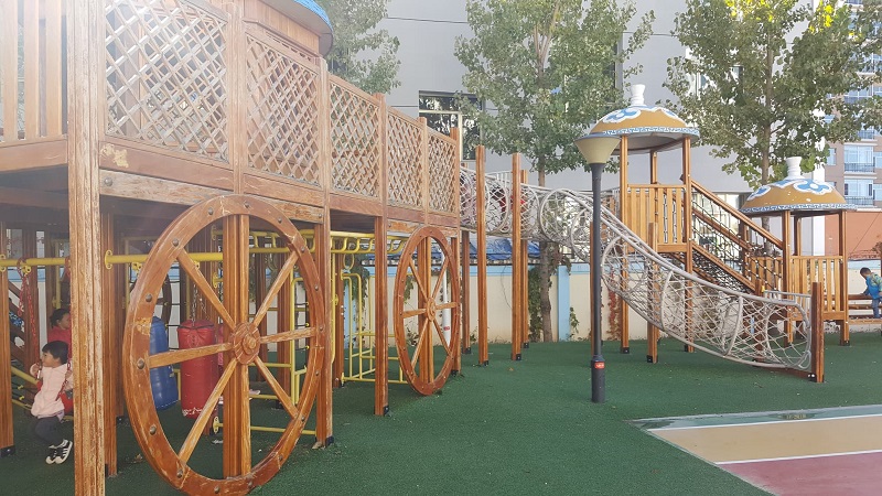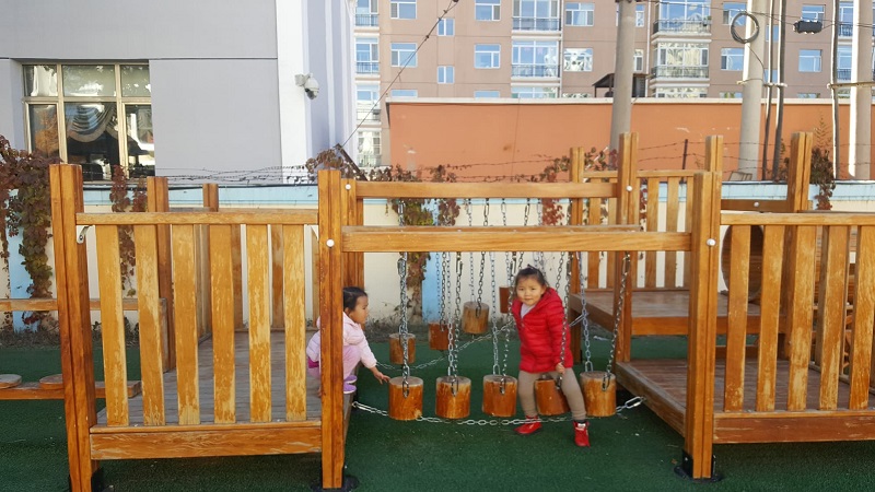 Цэцэрлэгийн цагийн хуваарь нь 07:30-17:30. Энэ хугацаанд хүүхдүүдийг үдээс өмнө болон хойно хоёр удаа гадаа салхилуулж, тоглох боломж олгодог гэж байлаа. Гадна талбай нь ямар уудам гэдгийг зургаас харж болно.
