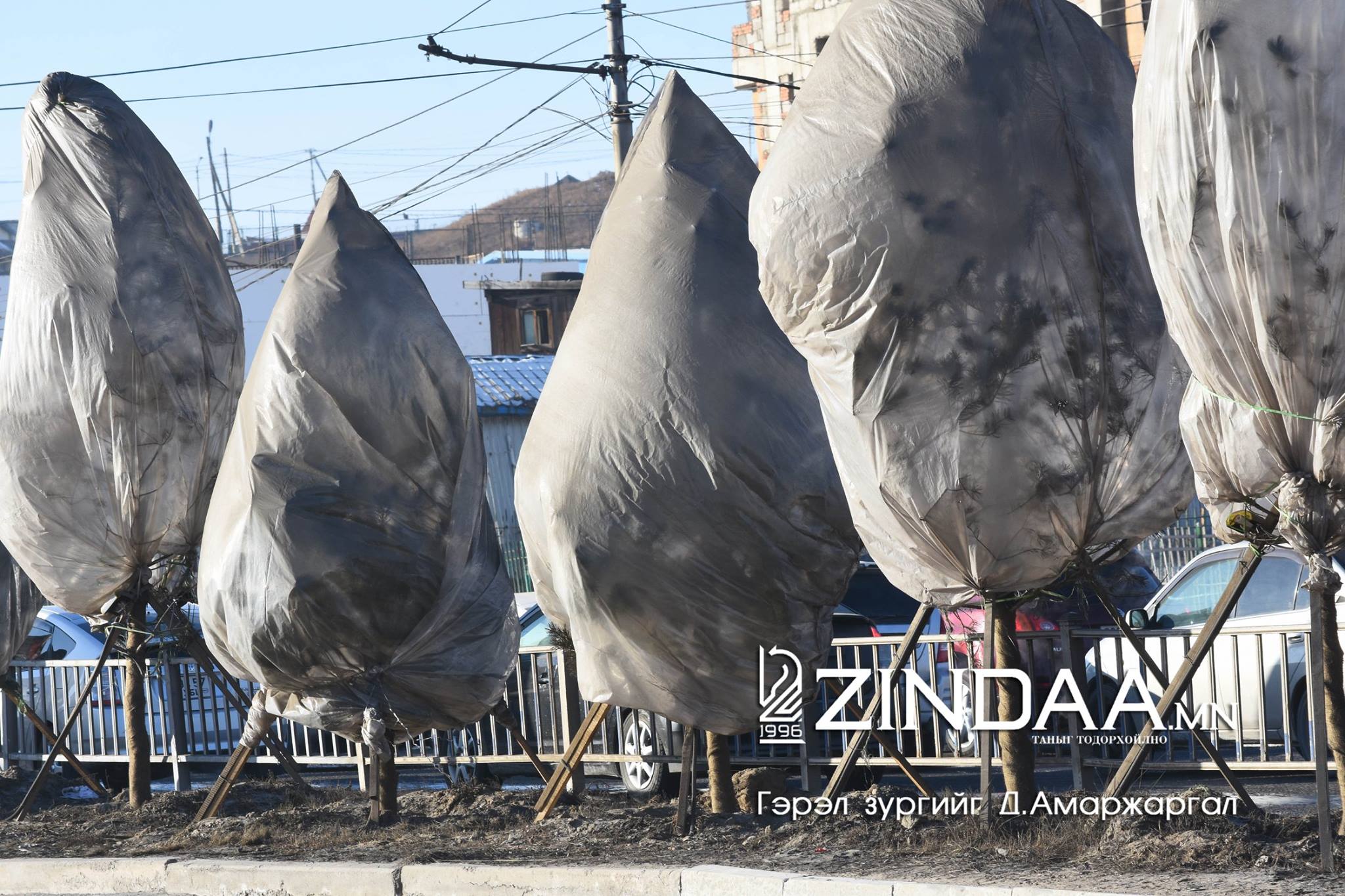 Энэ сэтгүүлч ямар ч мэдлэггүй юм байна. Сурвалжлага хийхээсээ өмнө өөрөө мэдэхгүй байж болно гэхдээ мэргэжлийн байгууллагаас нь асууж лавлаж мэдээд сурвалжлага хиймээр юм даа. Өвлийн улиралд ургамал ургалтын хугацаа зогсож тайван байдалд ордог учраас тэр нүүрстөрөгчийг шингээж хүчилтөрөгчийг ялгаруулах боломжгүй. ЭНэ модыг уутаар бүтээсэн нь хятадад модыг дулаан хучлагаар хучиж хамгаалдаг технологийг монголчилсон байдал нь. Яахав сайн талаас нь харвал шилмүүсийг хэт бохирдохоос хамгаалах, шилмүүсний амсрын эсүүдийг бохирдолд өртөж гэмтэхээс хамгаалж байна гэж харах юм байна.