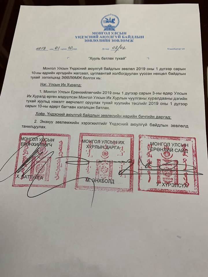 Ерөнхийлөгчийн Тамгын газраас Үндэсний аюулгүй байдлын хурлаар хэлэлцсэн асуудалтай холбогдуулж мэдээлэл хийхгүй гэсэн тайлбар өгөөд байгаа. Тэгвэл УИХ-ын гишүүн Т.Аюурсайхан твийтерт ингэж жиргэлээ. Тэрбээр Үндэсний аюулгүй байдал зөвлөмж гаргасан гээд дараах мэдээллийг өгчээ.