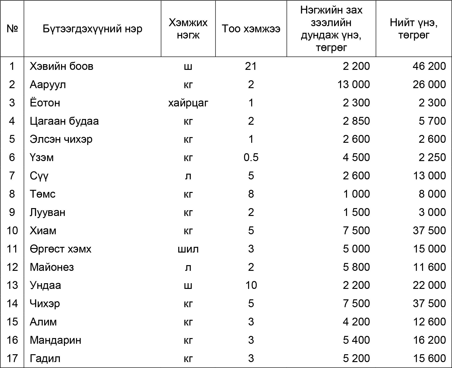 Гарын бэлэгт шаардагдах мөнгийг дунджаар дараах байдлаар тооцжээ
