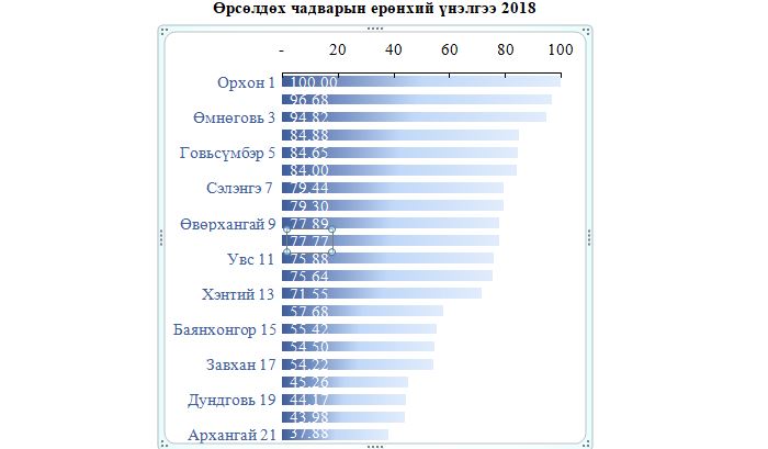 2018 онд хамгийн их ахиц гарсан аймгууд: Дорноговь, Хэнтий, Говьсүмбэр, Өвөрхангай бол үзүүлэлтүүд нь хамгийн их буурсан аймгууд Булган, Архангай, Хөвсгөл байна.