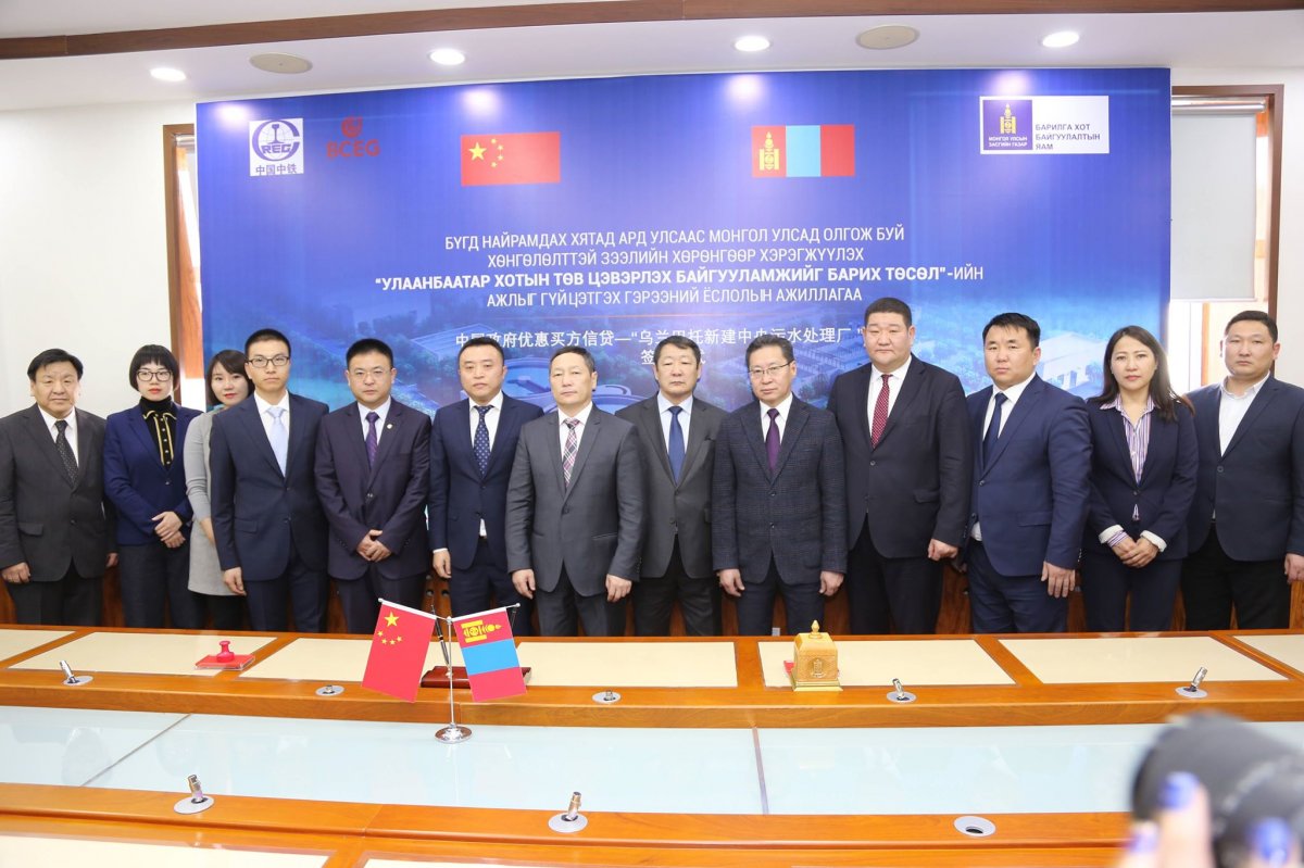 “Улаанбаатар хотын төв цэвэрлэх байгууламжийг шинээр барих” төслийн гүйцэтгэгчээр БНХАУ-ын “Бээжин констракшн инженеринг консорциум”-ын түншлэл шалгараад байгаа. Тус түншлэлтэй барилга угсралтын ажлын гэрээг байгуулах ёслол 2019.02.02-ны өдөр БХБЯ-нд болж, БХБ-ын дэд сайд Б.Мөнхбаатар, Төрийн нарийн бичгийн дарга С.Магнайсүрэн, дээрх түншлэлийн гишүүн БНХАУ-ын “Чайна тисижу сивил инженеринг” группийн захирал Ван Хай Тао нар гарын үсэг зурсан юм.