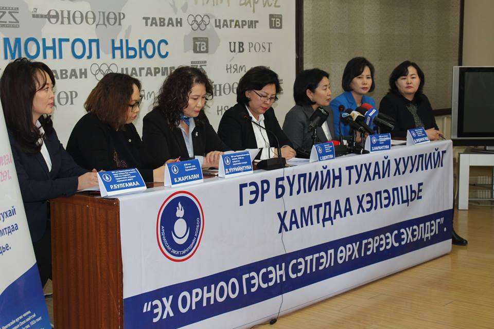 Ардчилсан эмэгтэйчүүдийн холбоо /АЭХ/-ноос Гэр бүлийн тухай хуулийг олон нийтээр хэлэлцүүлэх санаачлагыг гаргаж, “Хамтдаа хэлэлцье” аяныг орон даяар эхлүүлэхээр болжээ. Энэ тухай УИХ-ын гишүүн З.Нарантуяа, АЭХ-ны ерөнхийлөгч С.Одонтуяа, Монгол Улсын Ерөнхийлөгчийн зөвлөх Д.Үүрийнтуяа, Р.Булгамаа нар өнөөдөр /2019.02.18/ хэвлэлийнхэнд хандаж мэдээлэл өглөө.