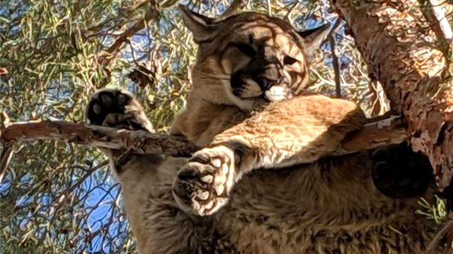АНУ-ын Калифорни мужийн нэгэн эдлэн газар модонд авирсан шилүүсийг гал сөнөөгчид ирж, аварчээ. Түүнийг эдлэн газрын эзэн цэцэрлэгээ цэвэрлэх явцад олж харжээ.