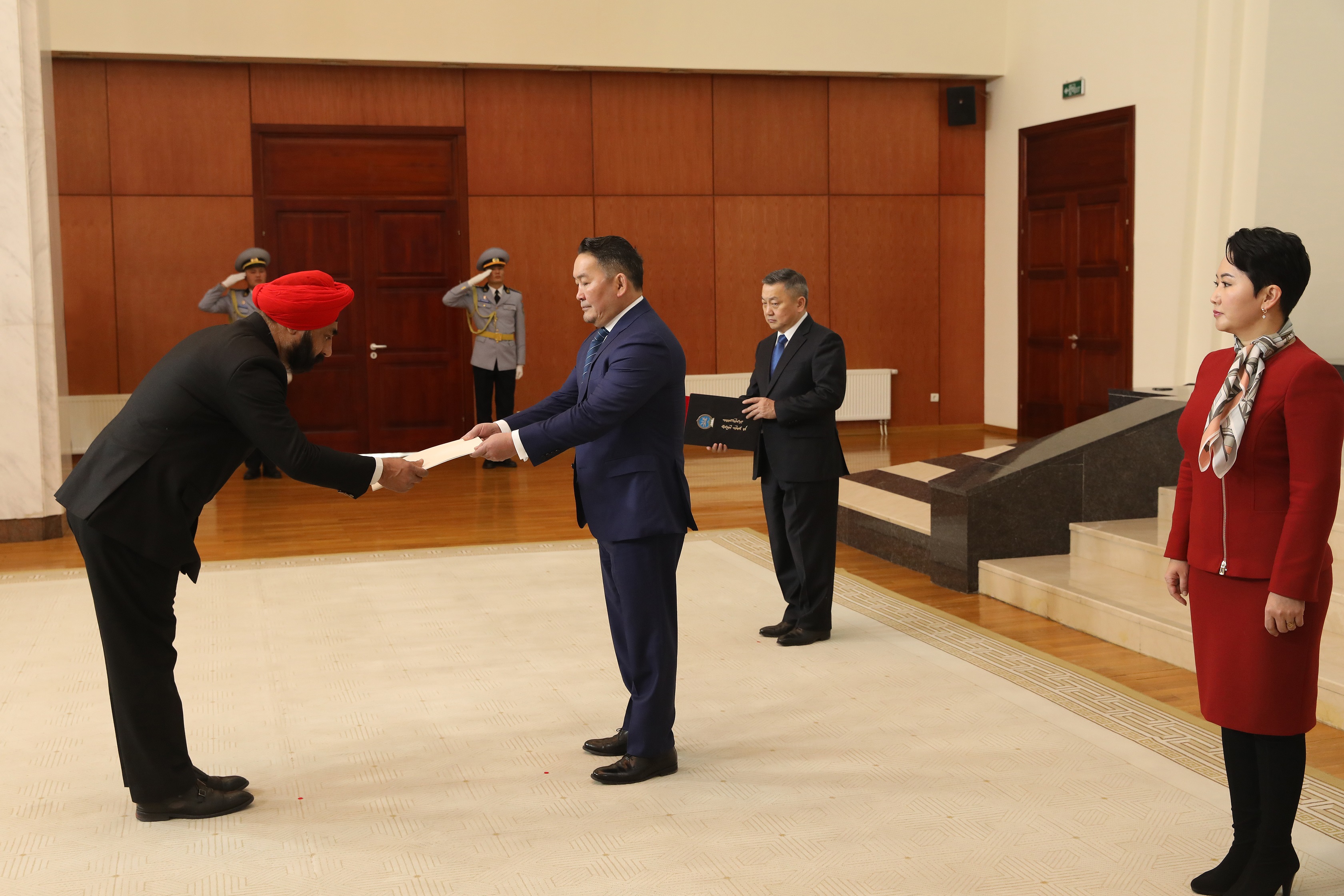 Бүгд Найрамдах Энэтхэг Улсаас Монгол Улсад суух Онц бөгөөд Бүрэн эрхт Элчин сайд Мохиндер Пратап Сингх өнөөдөр Монгол Улсын Ерөнхийлөгч Х.Баттулгад Итгэмжлэх жуух бичгээ өргөн барив.
