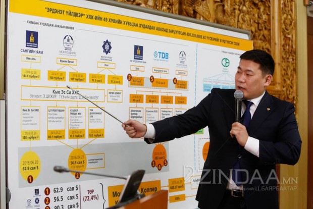 -Энэ бол “Эрдэнэт” үйлдвэр бүхлээрээ барьцаалагдсан асуудал. Энэ асуудалтай холбогдуулж хууль хяналтын байгууллага дээр шалгагдаж байгаа хүмүүс бий. Буруутай нь тогтоогдвол нөхөн төлбөрийг тэр хүмүүсээс гаргуулах ёстой. Гэтэл “Стандарт” банкинд төлөх төлбөр өссөөр байгаа. Төлбөрийг өндөр байлгах сонирхолтой хүмүүс бий. Сингапур болон бусад газарт уулзалт хийсэн тухай мэдээлэл тусгай албадын шугамаар бидэнд ирсэн . Тэгэхээр энэ бүхэнд хуулийн хүрээнд цэг тавих нь зөв. Хуулийн байгууллага бүхэл бүтэн хоёр жилийн хугацаанд энэ асуудлыг гаргаж ирэхгүй хав дарсан нь сонин байдаг. Үндсэндээ "Эрдэнэт” үйлдвэрийн асуудлын дараа Монгол Улсад төр байна уу гэдэг том асуудал босч ирнэ. Миний хувьд Ерөнхий сайдын захирамжийг биелүүлэн ажиллаж байна.