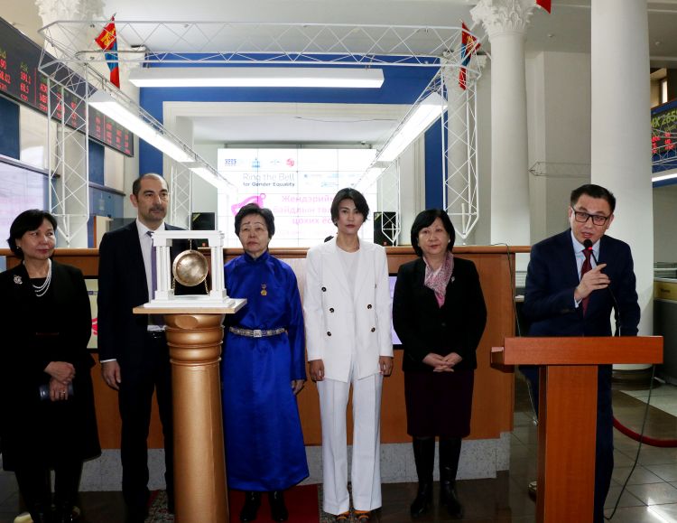 Олон улсын эмэгтэйчүүдийн эрхийг хамгаалах өдрийг тохиолдуулан “Монголын Хөрөнгийн Бирж” ТӨХК нь Олон Улсын Санхүүгийн Корпораци /ОУСК/, НҮБ-ын Глобал Компактын Монгол Улс дахь сүлжээ байгууллага, МҮХАҮТ-ын дэргэдэх Бизнес Эрхлэгч Эмэгтэйчүүдийн зөвлөлтэй хамтран “Жендерийн тэгш байдлын төлөө хонх цохих” ёслолын арга хэмжээг 3 дахь жилдээ зохион байгуулж, үнэт цаасны 5925 дахь удаагийн арилжааг нээлээ.