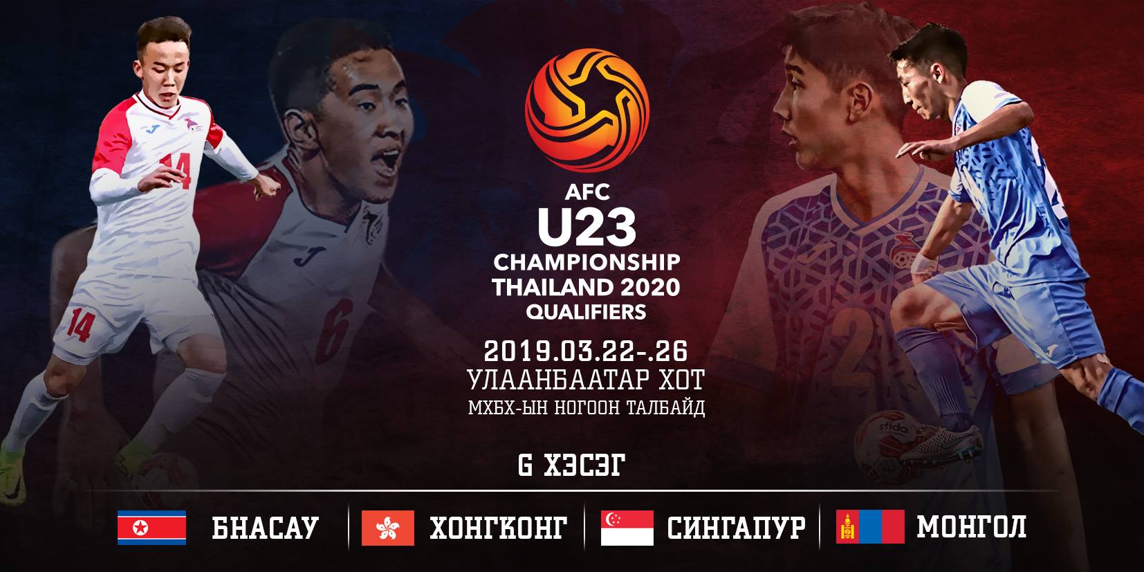 2020 онд Тайландад болох Азийн 23 хүртэлх насныхны АШТ-ий урьдчилсан шатны “G” хэсгийн тоглолтуудыг Монгол Улс хүлээн авах юм. Манай хэсэгт БНАСАУ, Хонконг, Сингапур улсууд багтсан байгаа. Хэсгээ тэргүүлсэн баг “2020 AFC U-23 Championship” тэмцээний дараагийн шатанд шалгаран үлдэх болно. Тун хариуцлагатай тоглолт манай багийг хүлээж байна.