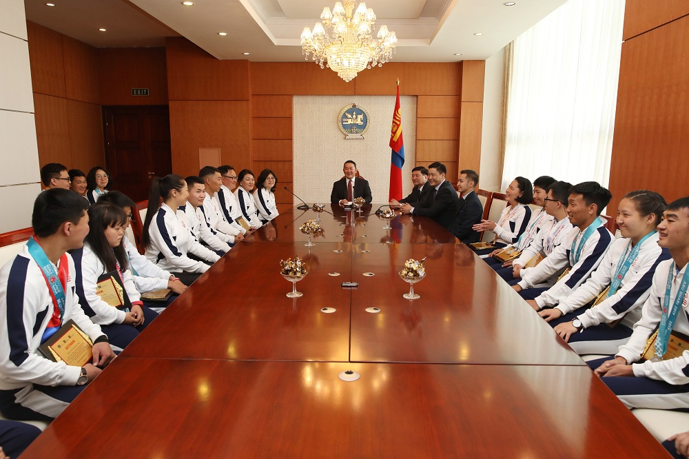 Харин өнөөдөр /2019.03.25/ Монгол Улсын Ерөнхийлөгч Х.Баттулга тэднийг олимпын наадамд амжилттай оролцож ирсэнд нь баяр хүргэн, хүлээн авч уулзлаа. Энэ үеэрээ Төрийн тэргүүн Засгийн газраас медаль хүртсэн тамирчдад мөнгөн урамшуулал олгож байгааг сайшаан, оюуны бэрхшээлтэй хүмүүсийн дунд зохиогдох аливаа тэмцээн, уралдаанд төр, засгаас санхүүгийн дэмжлэг үзүүлж байх ёстой хэмээн цохон тэмдэглэлээ.