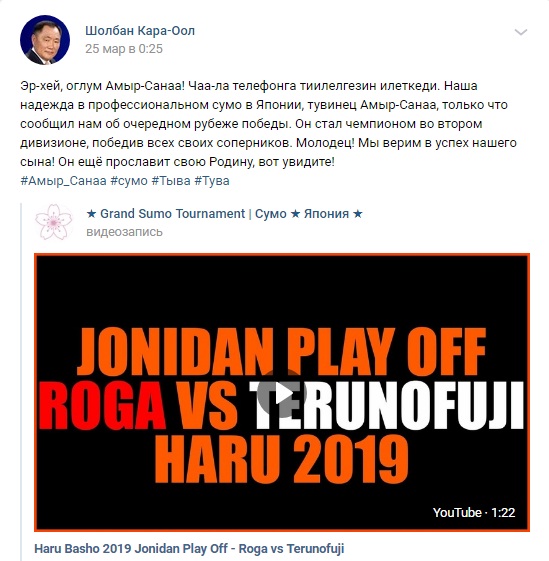 Тувагийн тэргүүн Шолбан Кара-оол Хаврын тэмцээний дараа “Мэргэжлийн сүмо дахь манай найдвар, тува залуу Амыр-Санаа дөнгөж сая утсаар ээлжит ялалтаа мэдээллээ. Тэр бүх өрсөлдөгчөө ялж, зиндаандаа түрүүлсэн байна. Сайн байна. Бид хүүдээ итгэж байна. Тэр эх орноо алдаршуулах болно. Харж байгаарай” гэж олон нийтийн сүлжээнд бичжээ.