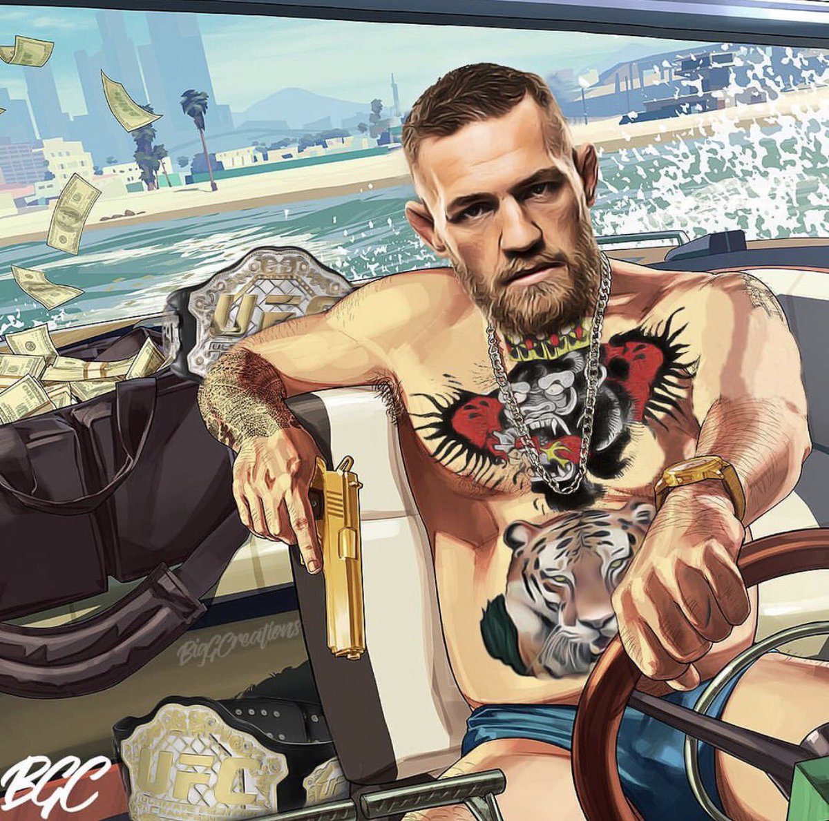 - “МакГрегор бол манай холбооны Мухаммед Али” гэж Дана Уайт хэлдэг байлаа. Конорын тулааны өмнөх зан араншин үнэхээр домогт боксчинтой төстэй. Тэр Алигийн нэгэн адил асар их мөнгөний өмнө зургаа авахуулж, Алид хүндэтгэл үзүүлж байв.