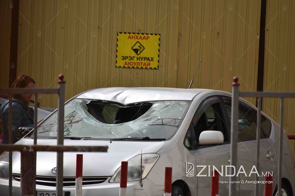 Харин машины арын суудалд зорчиж явсан иргэн У "Хүүхдийн ордоны чанх хойно баригдах өндөр барилга дээрээс том гэгч нь чулуу асар хүчтэйгээр унаж ирэх нь тэр. Бид 3-лаа явсан. Урд талдаа хоёр хос, ард нь би. Тэр том чулуу бид гурвын тэг голд нь тэсрэх бөмбөг шиг л ороод ирсэн. Урд шилээр орж ирээд, машины салон болон урд хайрцаганд байсан юм эвдэрсэн. Тэсрэх бөмбөг шиг. Ямар хүчтэй орж ирсэн нь ойлгомжтой байх. Үнэндээ одоо ч шокноосоо гарч чадаагүй л байна. Жаахан л урагшилсан бол миний дээр эсвэл урд байсан хоёр хүний аль нэгний дээрээс унах байлаа" гэжээ.