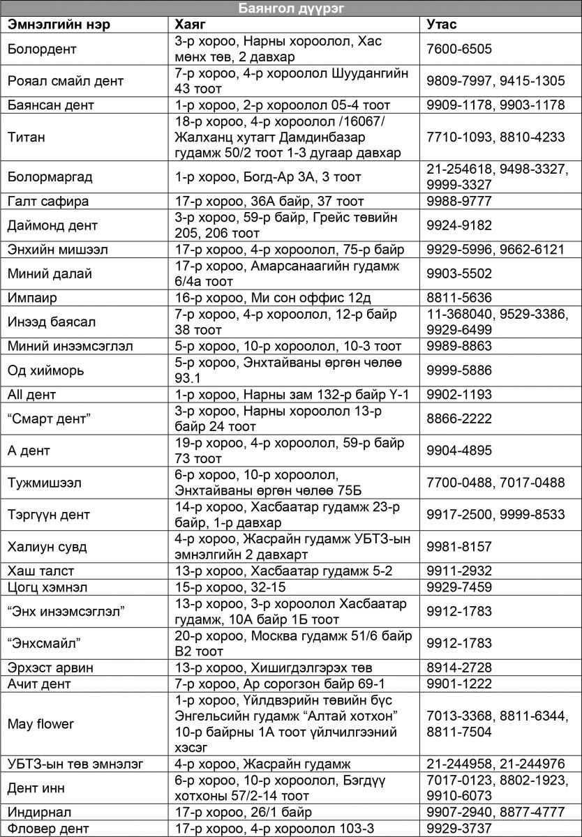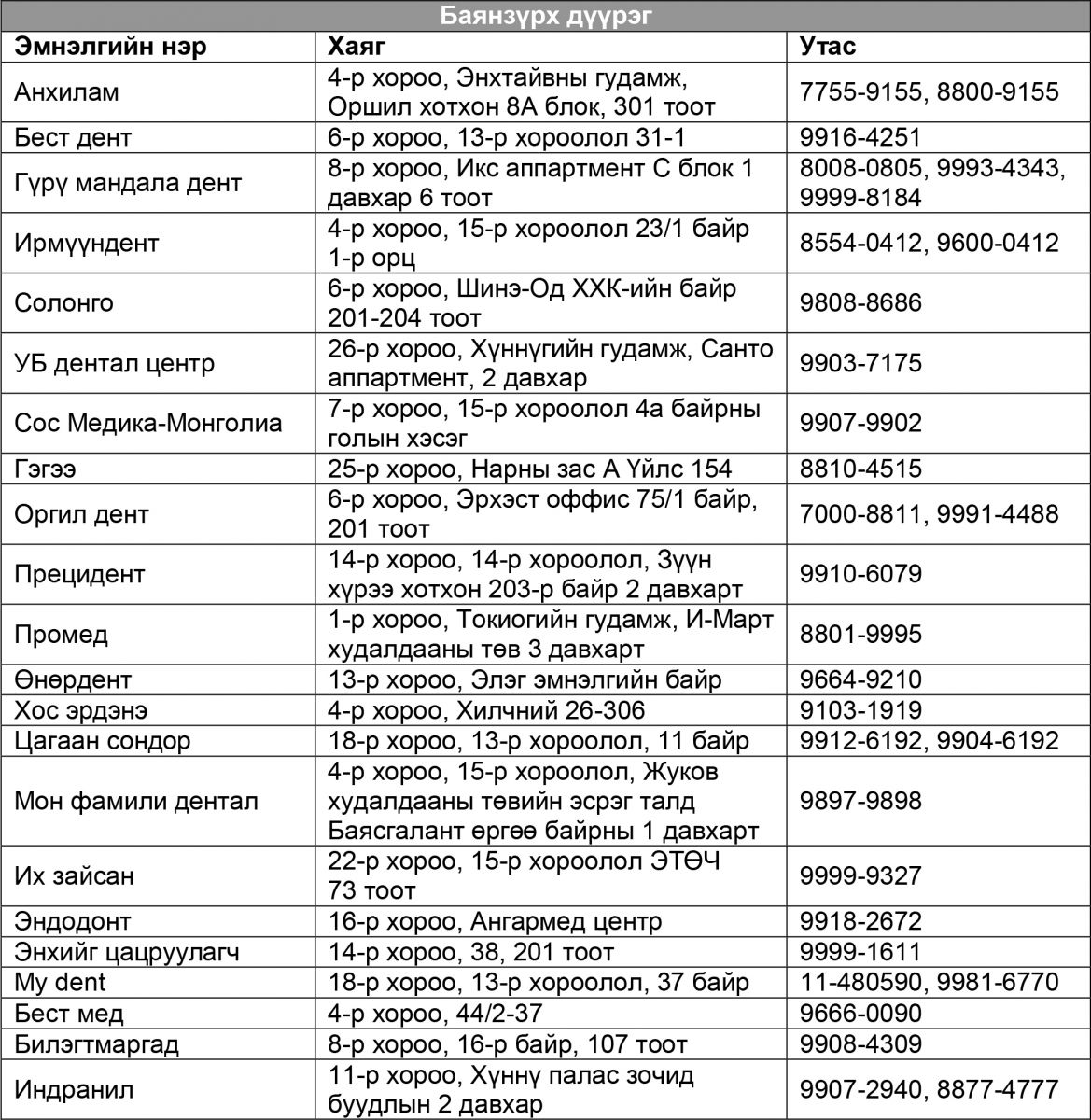 АХЛАХ ЗЭРГИЙН ЭМЧ Д.ДОРЖСҮРЭН: “БАЯНСАН ДЕНТ” ЭМНЭЛЭГ