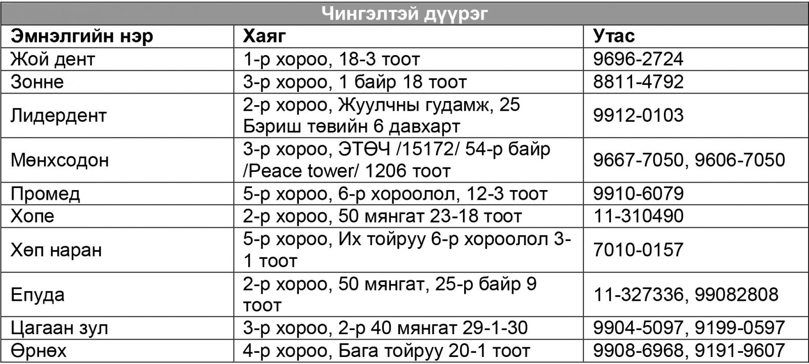 ТА ХҮҮХДЭЭ ҮЗҮҮЛЭХ БОЛОМЖТОЙ ЭМНЭЛГИЙН ЖАГСААЛТ,