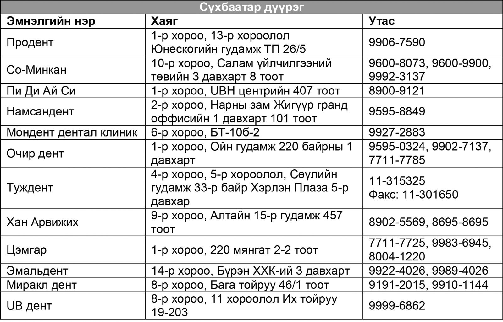 Хүүхдийн амны хөндийн эрүүл мэндийн урьдчилан сэргийлэх үзлэг, эмчлэн эрүүлжүүлэх тусламж, үйлчилгээг хувийн хэвшлийн шүдний эмнэлэг үзүүлэх юм. Энэ оны гуравдугаар сарын 18-27-нд зохион байгуулагдсан сонгон шалгаруулалтад нийслэлийн 142 шүдний эмнэлэг оролцож, 115 нь тэнцэж, 97 нь гэрээ байгуулжээ. Орон нутгийн хувьд сонгон шалгаруулалтад 101 шүдний эмнэлэг материал ирүүлснээс 84 нь тэнцэж, 64 нь гэрээ байгуулсан байна. Эдгээр эмнэлгийг сонгохдоо халдвар хамгааллын асуудлыг гол шалгуур үзүүлэлт болгожээ. 2-12 насны хүүхдүүд албан ёсны гэрээ байгуулсан эдгээр эмнэлгүүдээс харьяаллын дагуу сонгон үйлчлүүлэх боломжтой болж байна.