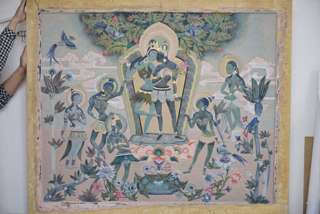 Монголын Урчуудын эвлэлийн гишүүн уран бүтээлч Н.Мөнхтуулын “Цэцгийн дагинас” хэмээх ногоон дарь эх бүжиж буй мэт дүртэй залбирал сүсэглэл эгшнээ төрүүлсэн бүтээлээс эхлээд нар зөв даялан хөтөлсөөр Э.Бямбабаярын “Борголжин” хэмээх монгол хатны хөргийг арьсан урлалын уран зангилаат төрлөөр харуулсан бүтээл хүртэл өөр өөрийн гэсэн онцлог, ур хийц, өгүүлэмж, хүүрнэлтэй ер бусын ертөнцөөр зочлов. Уран бүтээлч Э.Амарзаяа “Баг”, “Зүүд манагч”, “Таван сарын бороо”, Б.Дамдинрагчаа “Элсний дотоод тал”, Г.Чинбаяр “Тожин азарга”, Ц.Солонго “Би монгол хүн”, “Сэтгэл гарахуйн орон”, Б.Нармандах “Говийн эгшиглэн”, “Муур” Р.Ариунболд “Таван сум”, “Дэлүүн болдог”, С.Эрдэнэтуяа “Цагаан Уул, “Дэнж”, Ү.Мэргэн “Тэнгэрийн чимэг” зэрэг 20 гаруй уран бүтээлчийн 60 гаруй бүтээл тавигджээ. Монголын арьсан урлагийн “Хүрэл буга” нийгэмлэгийн тэргүүн Дүрслэх урлаг судлаач П.Батжавын санаачилгаар тус үзэсгэлэнг дөрөв дэх жилдээ зохион байгуулж байна. Үндэсний уламжлалт өв соёл, дүрслэх урлагийн нэгэн төрөл арьсан урлагийг хөгжүүлэх зорилготой тус үзэсгэлэнд арьсан хөөмөл чимэглэлийн ханын зураг, арьсан барималын төрлөөр хийгдсэн бүтээлүүд байв.