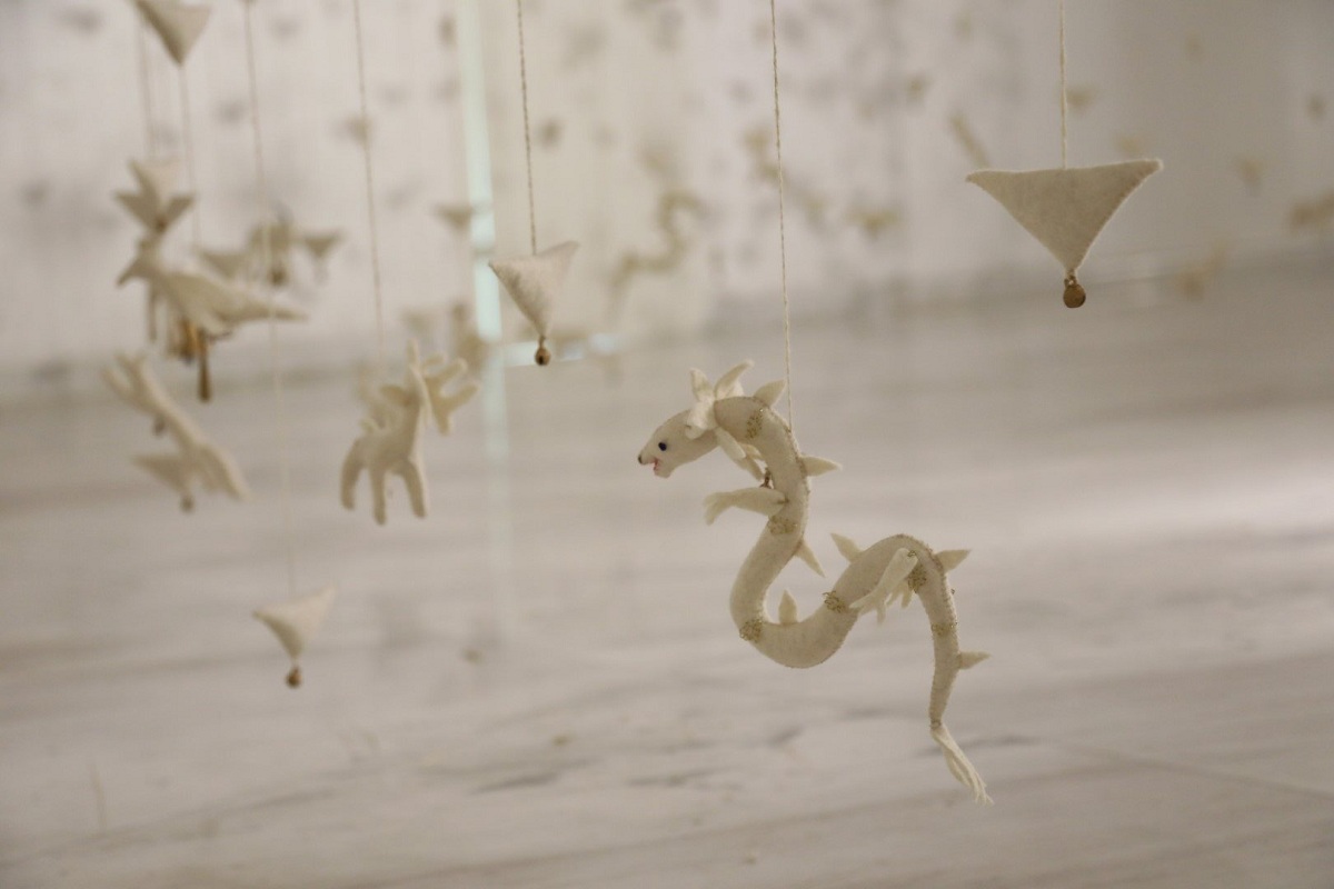 Монгол гэрийн тооныг санагдуулам дугариг цагирагнаас эсгий үнэг, гурвалжин дүрс бүхий чимэглэлүүд, амьтдын бяцхан чихмэл, тоглоом, хонх сэлт унжуулсан өрөг урлагийн бүтээл энэхүү үзэсгэлэнгийн хоймрыг эзэлжээ. Нялх хүүхдийг айж цочих, элдэв гай барцадаас хамгаалах зорилгоор эртнээс монголчууд дом шүтлэгийн хэлбэрээр ийнхүү үнэг, тоглоом хайчилж унжуулдаг байсан билээ. Энэ дом шүтлэгээс ч болсон уу, харахад л хайр хүрэм, нялх үр хаа нэгтээ үнэгчлэн нойрсож буй мэт энхрий санагдуулна. Өрөг урлагийн бүтээлээс гадна хатгамал, наамал, уран зураг хоршсон холимог техникийн 10 орчим зургаа үзэсгэлэнд дэлгэсэн нь мөн л өвөрмөц сэтгэгдэл төрүүлэхээр юм. Ж.Анунаран өмнө нь “Чөлөөлөлт”, “Өөрчлөлт”, “Өрнөлт”, “Орчил” зэрэг бие даасан өвөрмөц үзэсгэлэнгүүдээрээ олон нийтэд хэдийнэ танигдсан авьяаслаг залуу уран бүтээлчдийн нэг билээ.