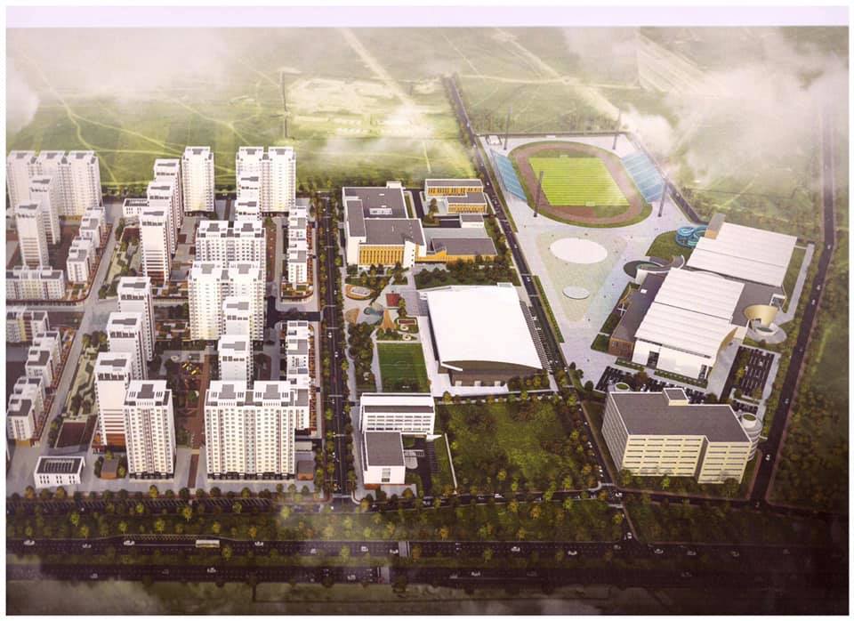 Энэ цогцолборт 50м бассейн бүхий олон улсын стандартын усан спортын цогцолбор баригдах бөгөөд газар шорооны суурийн ажил дууссан бол 4000 орчим тамирчин байрлах тосгоны барилга угсралт мөн дуусч, гадна дотно заслын ажил үргэлжилж байна.