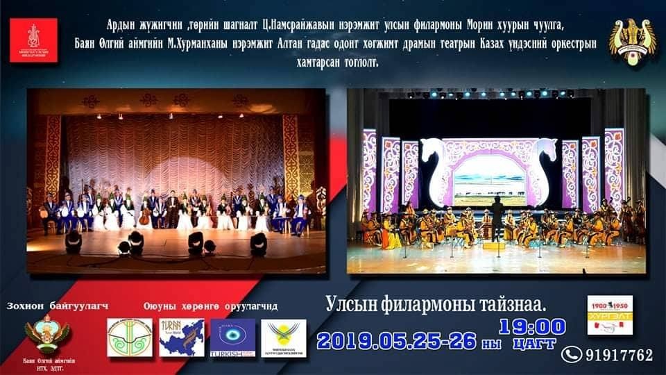-Казак үндэсний найрал хөгжим морин хууртай хамтран Төрийн соёрхолт Б.Шаравын “Сэрсэн тал”, Төрийн шагналт Ж.Чулууны “Уран хас”, Ц.Нацагдоржийн “Тэмээчдийн уралдаан” гээд Монголынхоо сонгодогуудыг тоглоно. Морин хуурын чуулгатай казак дуу эгшиглэнэ. Монгол улсын филармоны дарга Ч. Даваасүрэн, Монгол Улсын филармоны ерөнхий найруулагч С.Сүхбаатар, уран сайхны удирдагч З.Хосбаяр нарын дэмжлэгээр морин хуур, домбор хөгжмийн бэлтгэл гурван сараас эхлээд явагдаж байна.
