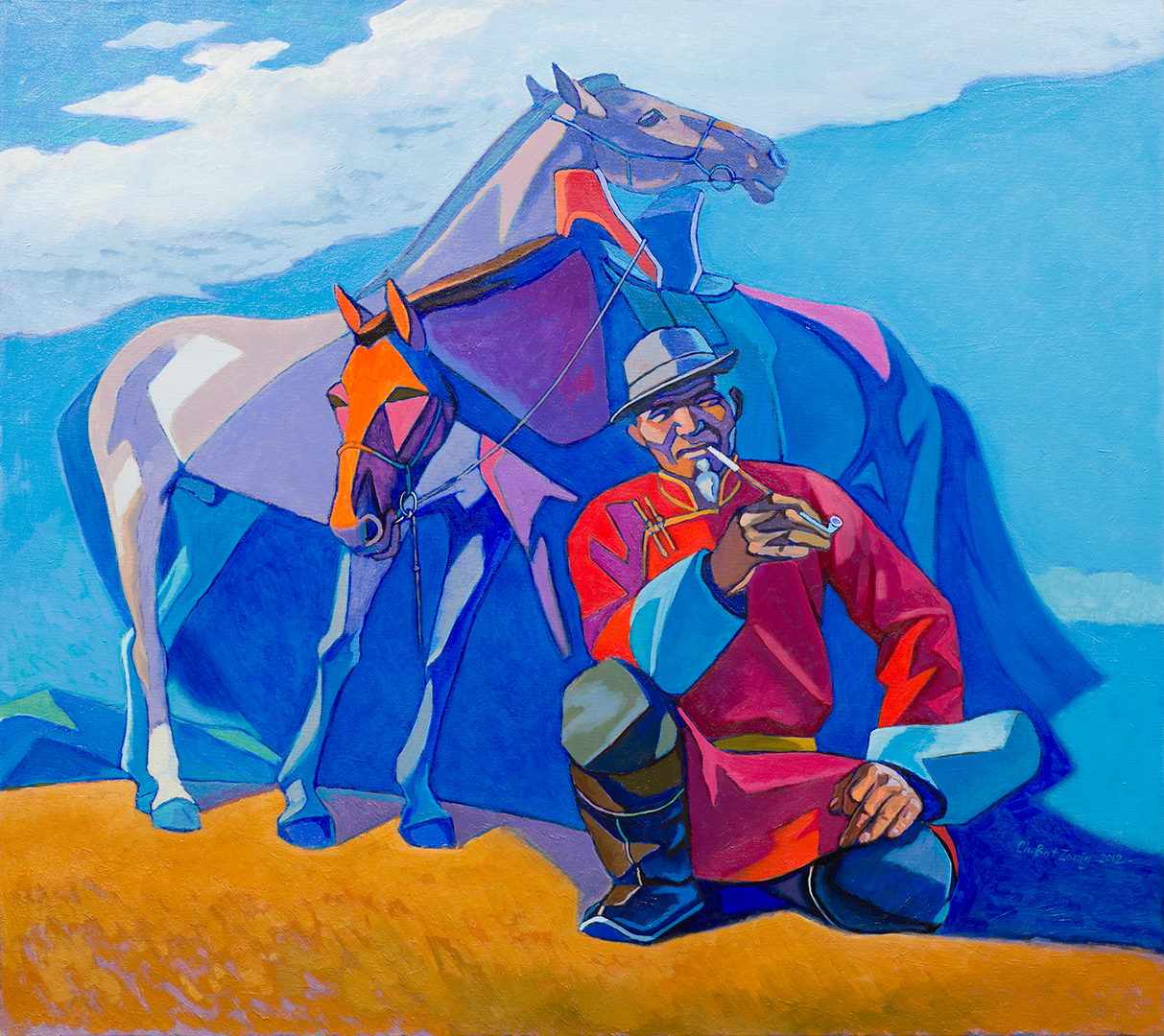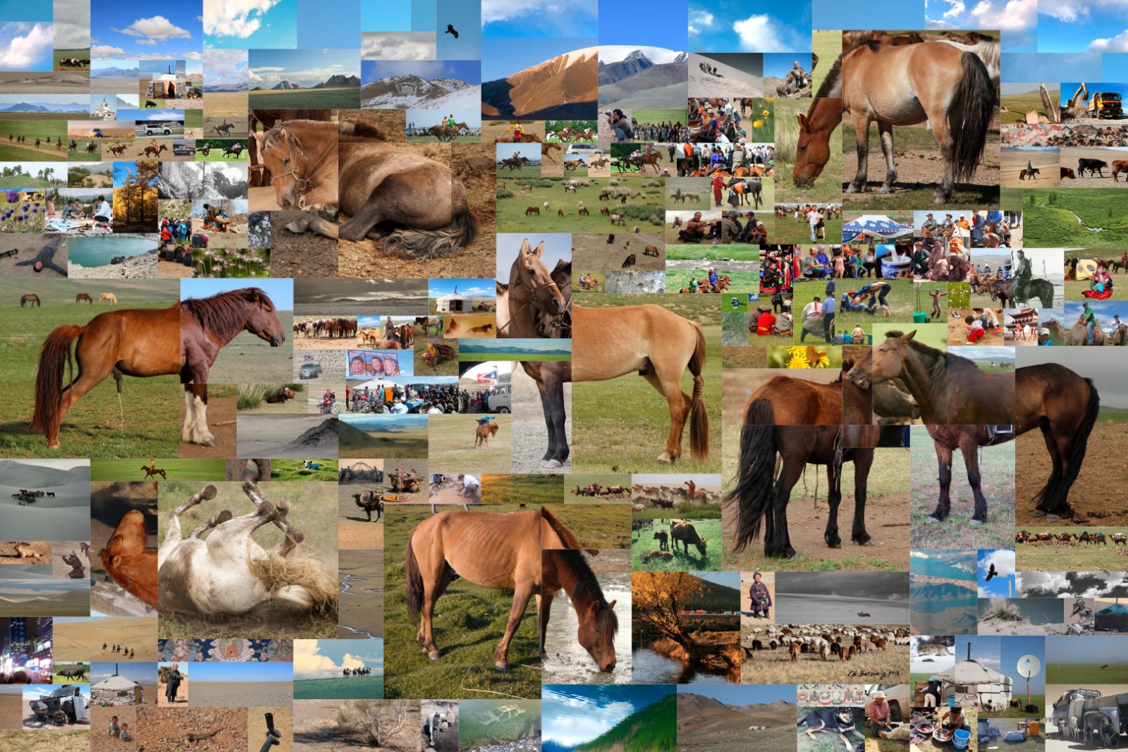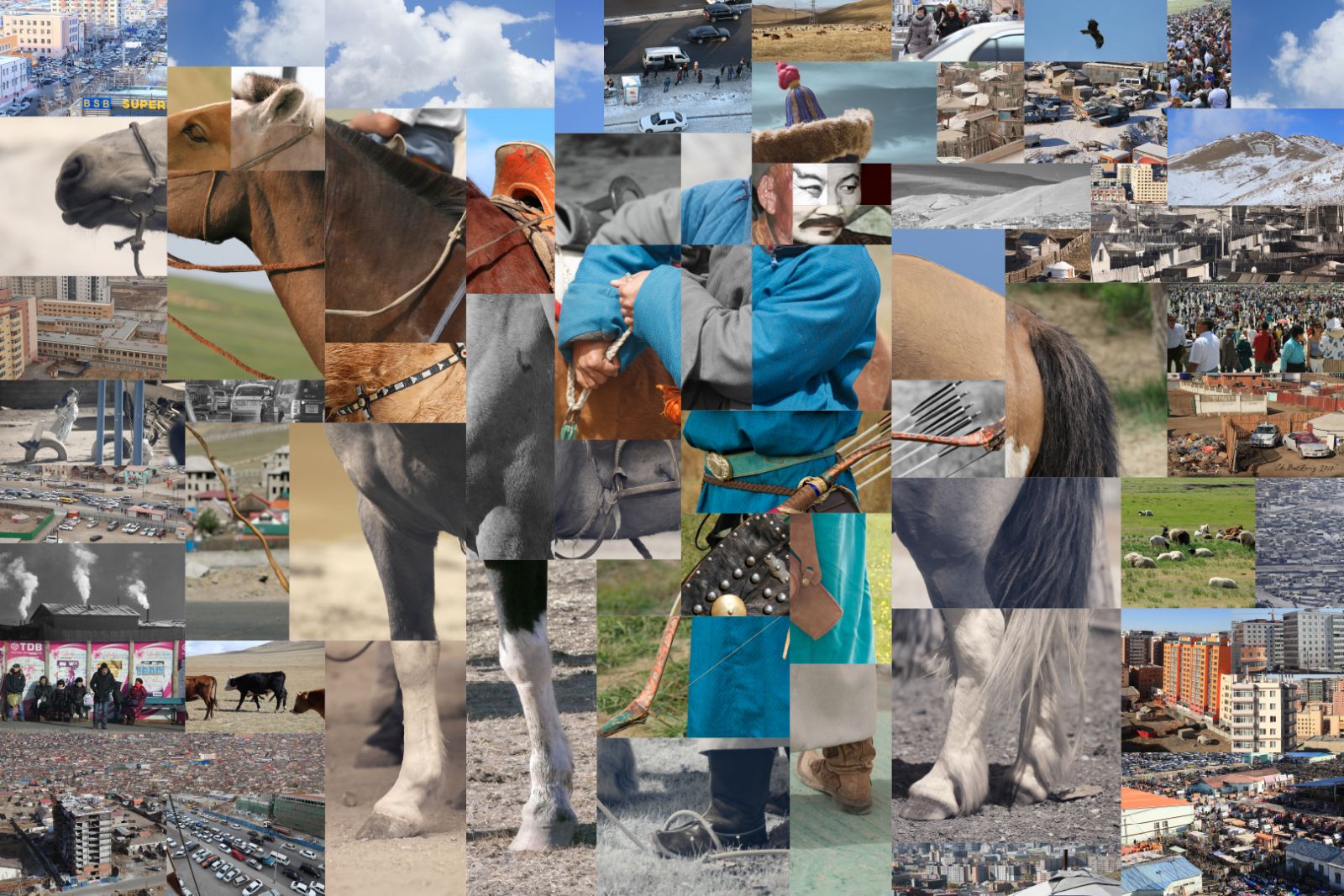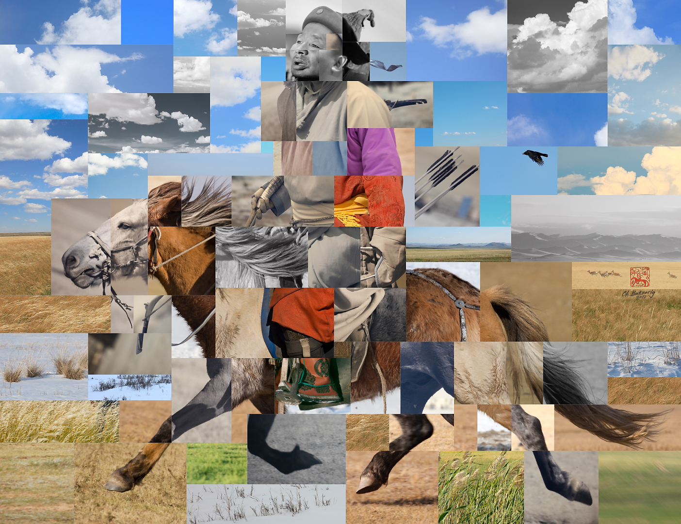 Дүрслэх урлагийн түүхэнд 1930-аад оноос барууны оронд үүсч хөгжсөн коллаж зураг манай оронд нилээд хожуу нэвтэрчээ. 1998 онд СУИС-ийн чимэглэх дизайн ангийг төгссөн зураач Ч.Батзориг 2002-2006 онд Америкт график дизайнер чиглэлээр суралцаад иржээ. Гавъяат зүтгэлтэн Ц.Нарангэрэл багшийн шавь болоод ч тэр үү багшийнхаа зурдаг байгалийн чиглэлээр дагнан зурсаар иржээ. Эх орондоо 2008 онд ирээд аавынхаа авсан “Монгол костьюмс” ийн моделиудын гэрэл зургийг олж хараад тэр олон кадрыг ашиглаад нэг бүхэл зураг бүтээж, өөрийнхөө хүссэн хөдөлгөөнд оруулж болох юм гэсэн санаа төржээ.