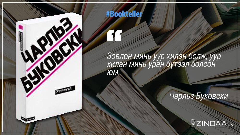 Америкийн яруу найрагч, үргэлжилсэн үгийн зохиолч Хэнри Чарльз Буковскийн хамгийн алдартай бүтээл “Хүүхнүүд” роман монгол хэлнээ хэвлэгдээд удаагүй байна. Уг номыг орчуулагч Б.Хатантөмөр орчуулж, шинээр байгуулагдаж буй “boobooks creative team”-ээс эрхлэн хэвлүүлжээ.