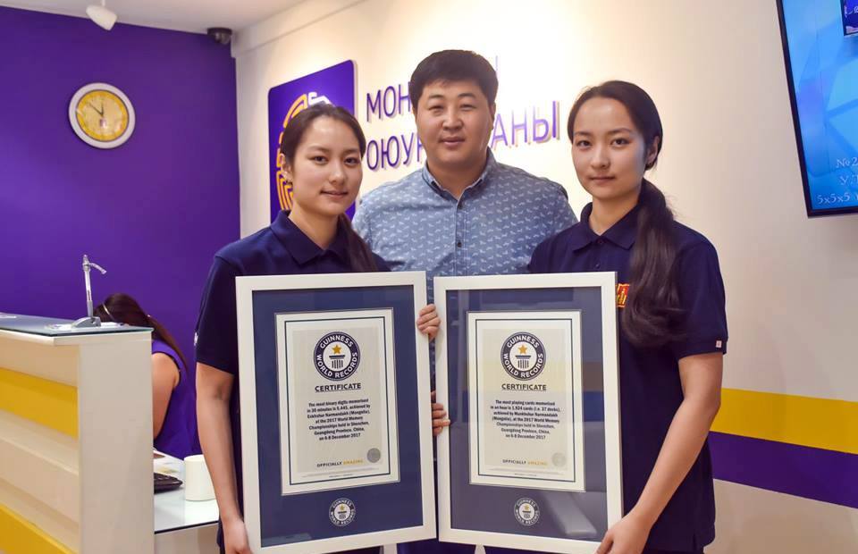 Ой тогтоолтын насанд хүрэгчдийн Дэлхийн аварга, Олон улсын их мастер, Монголын оюун ухааны академийн ихэр тамирчид болох Н.Мөнхшүр, Н.Энхшүр нар Гиннессийн номд албан ёсоор бүртгэгдсэн сертификатаа авлаа.