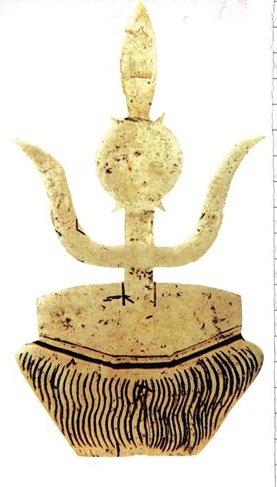 Би Хятад оронд явж байхдаа “Монгол-Юан гүрний соёл” (Mongol- Yuan culture) гэдэг номтой нүд харгав. 1990 оноос хойш монголчууд есөн хөлт цагаан тугийг үйлдэж, Улсын их баяраар цэнгүүлдэг заншил тогтсон... Их Монголын цагаан туг ямар байсан бол гэсэн оньсого л бидэнд байсан. Бид нэг их хол алдсангүй бололтой. Дээрх номонд хашаар хийсэн цагаан тугны бичил хийцний зураг тавигджээ... Тойроод есөн туг байж уу? Есөн тулгуурт нэгэн туг байж уу? гэдэг санаа лав л тэнэг миний сэтгэлд эргэлзээ төрүүлсэн оньсого хэвээрээ...?!! Энэ (зураг 1) олдвор бололтой юм... Онго шүтээн маягтайгаар овор багатай, хас чулуугаар үйлдсэн мэт. Энэ зурагтай жишихэд бид Их цагаан тугныхаа тухайд, оройн зэв, сэрээг ойролцоо “буудсан” байх юм...