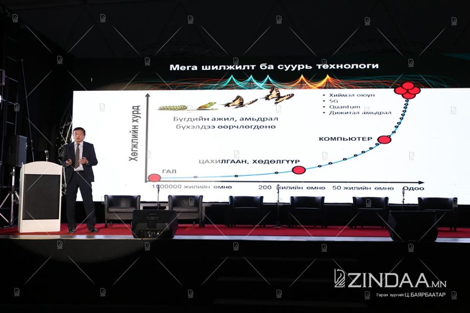 “Технологийн шинэ эрин ба Хөгжлийн бодлого” сэдвээр илтгэл тавьсан профессор Г.Зориг хэлэхдээ “Дэлхий хиймэл оюун ухаан, 5G технологи гэхчлэн асар хурдтай урагшилж байхад бид хаана явна вэ. Суурь технологийн талаарх төрийн бодлого хэзээ гарах юм бэ? Бид ухрах уу, урагшлах уу. Инновацийн тухай ойлголтоо хэзээ өөрчлөх вэ. Инновац гэдэг бол эрдэм шинжилгээний өгүүлэл, патент хамгаалалт биш ээ. Бид Монголдоо л өрсөлдөнө гээд байна. Инновац гэдэг чинь дэлхийд л гарах тухай шүү дээ. Дэлхий рүү гарах гэж зүтгэж, сэтгэлгээгээ өөрчлөн урагшлах хэрэгтэй” гэж байв.