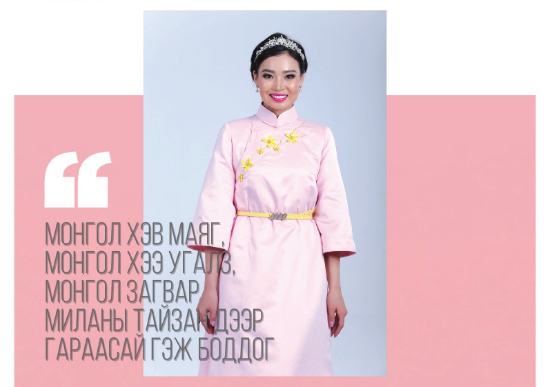 -Энэ номон дээрх зургууд нь энэ хувцаснууд Монгол, энэ үндэстэн өөрөө Монгол гээд батлаад өгчихсөн байгаа. Ямар ч тансаг байсан юм. Саяхан нөхөр маань надад Солонгосын олдвортой ном авчирч өглөө. Дизайнертаа өгч “Авах санаа байвал хараарай” гэсэн чинь “Ямар ядуу байсан юм бэ, ерөөсөө таараар хийсэн хэдэн дээл л байна” гэж байсан. Тэгэхэд манай Монгол хувцас хичнээн тансаг гэж бодно. Монгол үндэстний хувцасны эрин үе гэж нэрлэгдсэн байгаа юм. Шүр, сувд, танаар хээнүүдийг нь хатгасан байна. Буриад хувцас гэхэд Монголынх гээд бүгдийг нь тайлбарлаад биччихсэн. Ийм тэнгэрлэг, баялаг түүхтэй ард түмний соёлыг бид түгээж, дэлгэрүүлж, сурталчилж үр хүүхэддээ гараар барьж нүдээр харуулж мэдрүүлэх ёстой юм. Оёх гэж хичнээн их ур ухаан, хөдөлмөр орсон бол. Энэ бүхэн бүгд гайхамшиг.