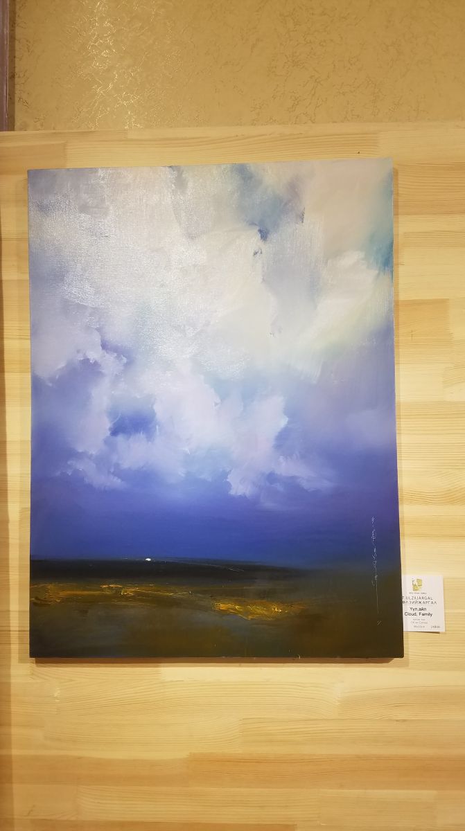 Т.Өлзийжаргал хэмээх даруухан бор залуу өөрийн бүтээлээ имперсионист, модерн урсгалаар язгуур зан заншил, монгол ахуй, морь мал, байгаль орон, дорно дахины философийг шингээж зурдаг ажээ. Цагаан чоныг хоточ монгол банхартай хослуулж зурсан нь байгалийн зэрлэг амьтдыг монгол хүмүүс анх гэршүүлж байсан утгыг илэрхийлсэн гэж тэрбээр эхнэрийнхээ бүтээлийг тайлбарлалаа. “Уран бүтээлч хүн ямар нэг урсгалд баригдахгүй, үргэлж эрэл хайгуул хийж шинэлэг байх ёстой. Урьд нь зурсан арга барилаараа өөрийгөө давтаж болохгүй” гэж зураач маань нэмж хэлээд үзэсгэлэнгийн нээлтээ хийхээр бослоо. Түүний туурвисан “Чоно”, “Монгол хатан”, “Зургаан зүйл, хамаг амьтан”, “Үүл, айл” зэрэг бүтээлүүд өнгөрсөн ба одоо цагийг зэрэгцүүлэн, бодит ба хийсвэр үзэгдлийг хослуулан, дорнын сэтгэлгээг дотогшоо чимээлсэн агуулгатай эрс шийдэмгий, зоригтой шийдлүүдээрээ өөрийн эрхгүй үзэгчдийг дуу алдуулна. Үзэсгэлэнгийн нээлтэд зураачдын охин Ө.Хүслэн хийл хөгжмөөр “Халуун элгэн нутаг”, “Вивалды А менор”-ыг эгшиглүүлж, уран зураг хөгжмийн зохицлыг харуулав.