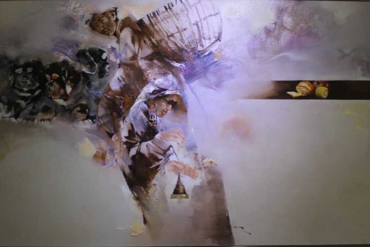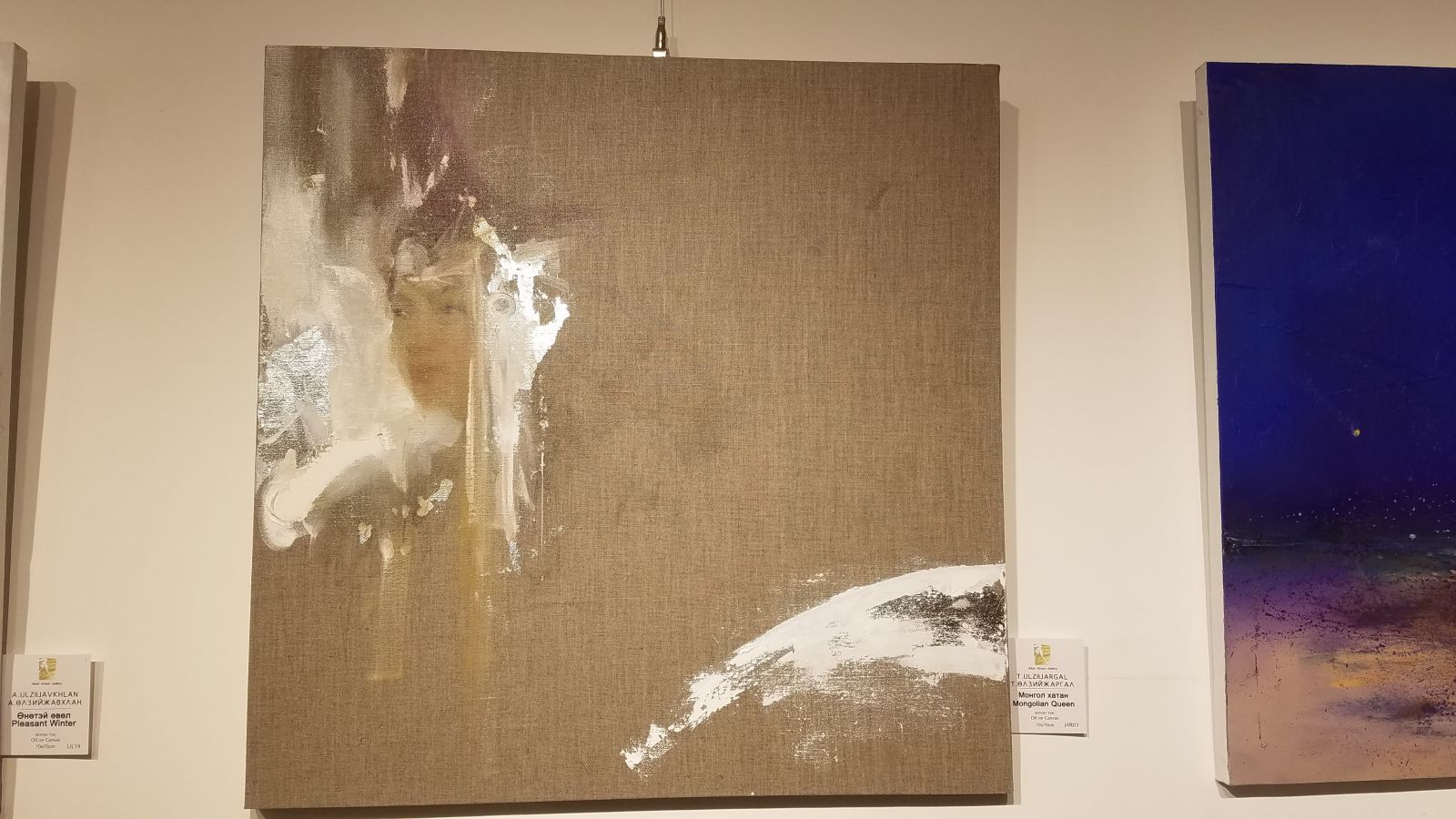 Шавилхан биетэй, урт хар гэзэгтэй, хонин бор нүдтэй бүсгүйг А.Өлзийжавхлан гэдэг. Биедээ баймгүй том бүтээлийг туурвиж яваа энэ бүсгүй Дундговь аймгийн Өлзийт сумын унаган охин. Өлзийтийн талаас урлаг соёлын олон алдартнууд төрдөг бол бийр бүжүүлэгч уран гартанг эрин галавын хөндийгөөсөө, эртний чулуужсан тууриасаа төрүүлжээ. “Хүн хамгийн сайн мэддэг зүйлээ л зурах дуртай байдаг. Мэдээ орохын л эсгий гэрт эрхэлж өссөн энхрий жаахан охины хурга ишигтэй тоглож өнгөрүүлсэн гэрэлт өдрүүд зүүд зэрэглээ мэт зүрхний угаас ундран боргилж тэжээж тэтгэж байдаг юм” гэж Өлзийжавхлан инээмсэглэн өгүүлнэ. Энэхүү үзэсгэлэнд тэдний бүх бүтээл тавигдсангүй. Байгаль эх, хүн хоёрын шүтэн барилдлага, амьд оршихуйн мөн чанар, эрт үеэс зохицон амьдарч ирсэн нүүдэлчин ахуйн, зан заншил, монгол сэтгэлгээг харуулсан гэгээлэг, өнгөлөг зургуудаа түүвэрлэн дэлгэжээ. “Миний уран бүтээлийг хараад хүмүүс уур цухал, бухимдал мэдрэгдлээ гэдэг. Тэгэхээр нь заавал хүнийг баярлуулаад байх албагүй гэж хариулдаг. Энэ удаад арай өөр мэдрэмж өгч байгаадаа баяртай байна” гэж бүсгүй ахиад л инээмсэглээд шаргал үст франц бүсгүйд зургаа тайлбарлахаар явав.