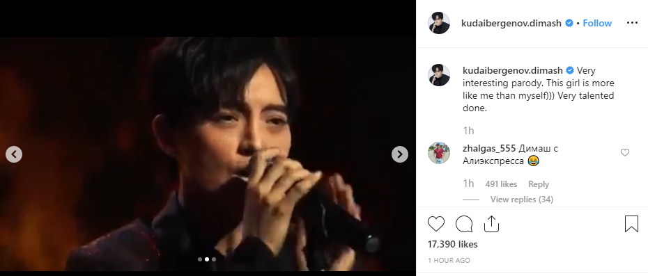 Димаш өөрийг нь дуурайсан бүсгүйг хайж байгаагаа инстаграм хуудсаараа дамжуулан мэдэгдсэн байна.