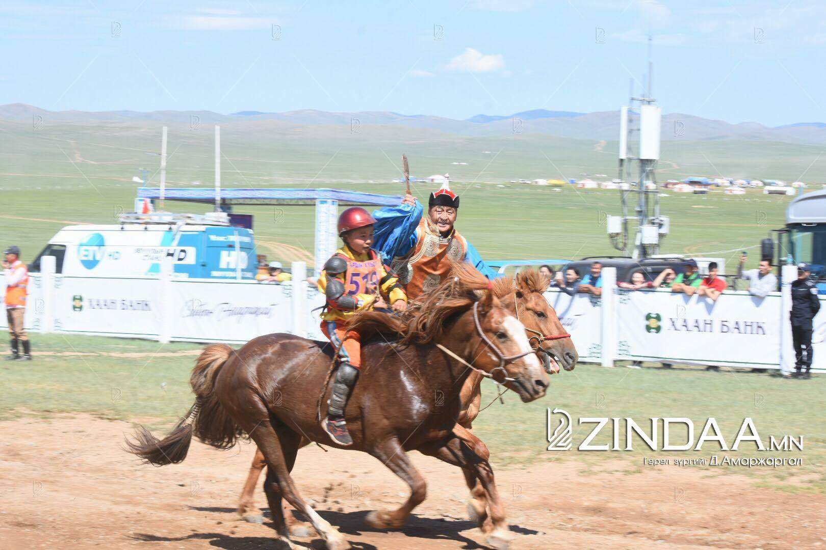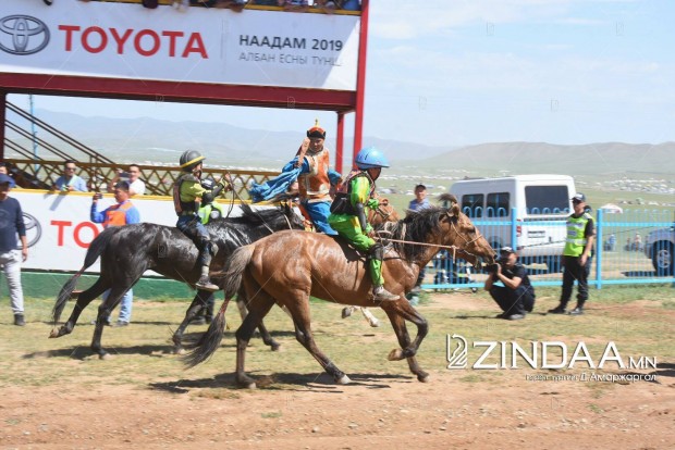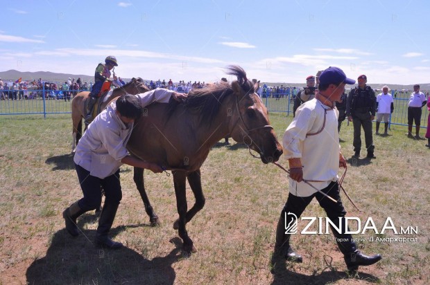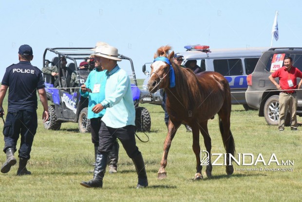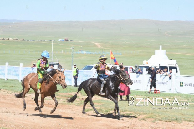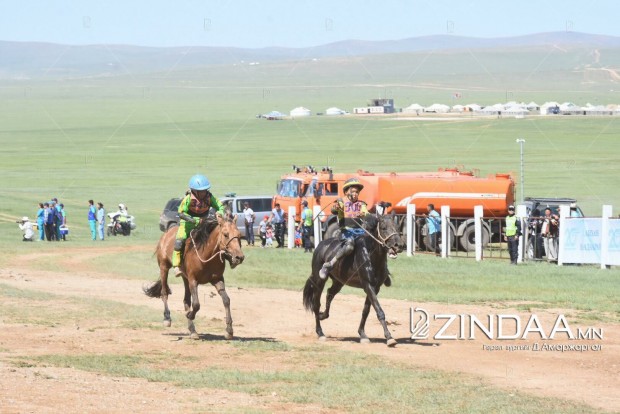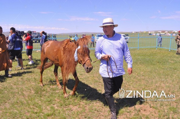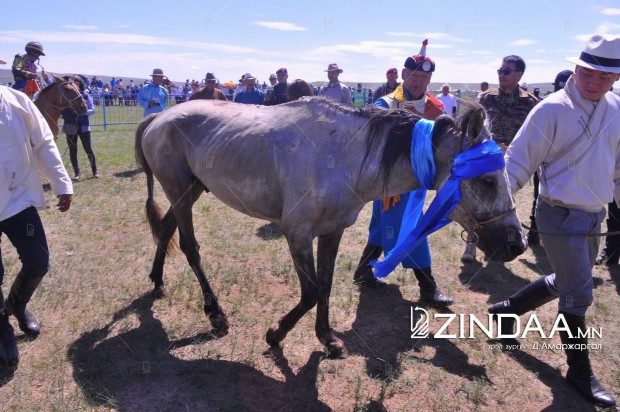 Хурдан азарганы уралдааны аман хүзүүнд Архангай аймгийн Төвшрүүлэх сумын уугуул Ө.Пүрэвбаатарын загал, айргийн гуравт Улаанбаатар хотын Хан-Уул дүүргийн уяач Х.Мөнхтулгын бор азарга, айргийн дөрөвт Дорноговь аймгийн Хөвсгөл сумын уугуул Б.Эрдэнэбатын мөлүү хул азарга, айргийн тавд Архангай аймгийн Хотонт сумын уугуул аймгийн алдарт уяач Д.Лхагвасүрэнгийн бор азарга тус тус хурдаллаа.