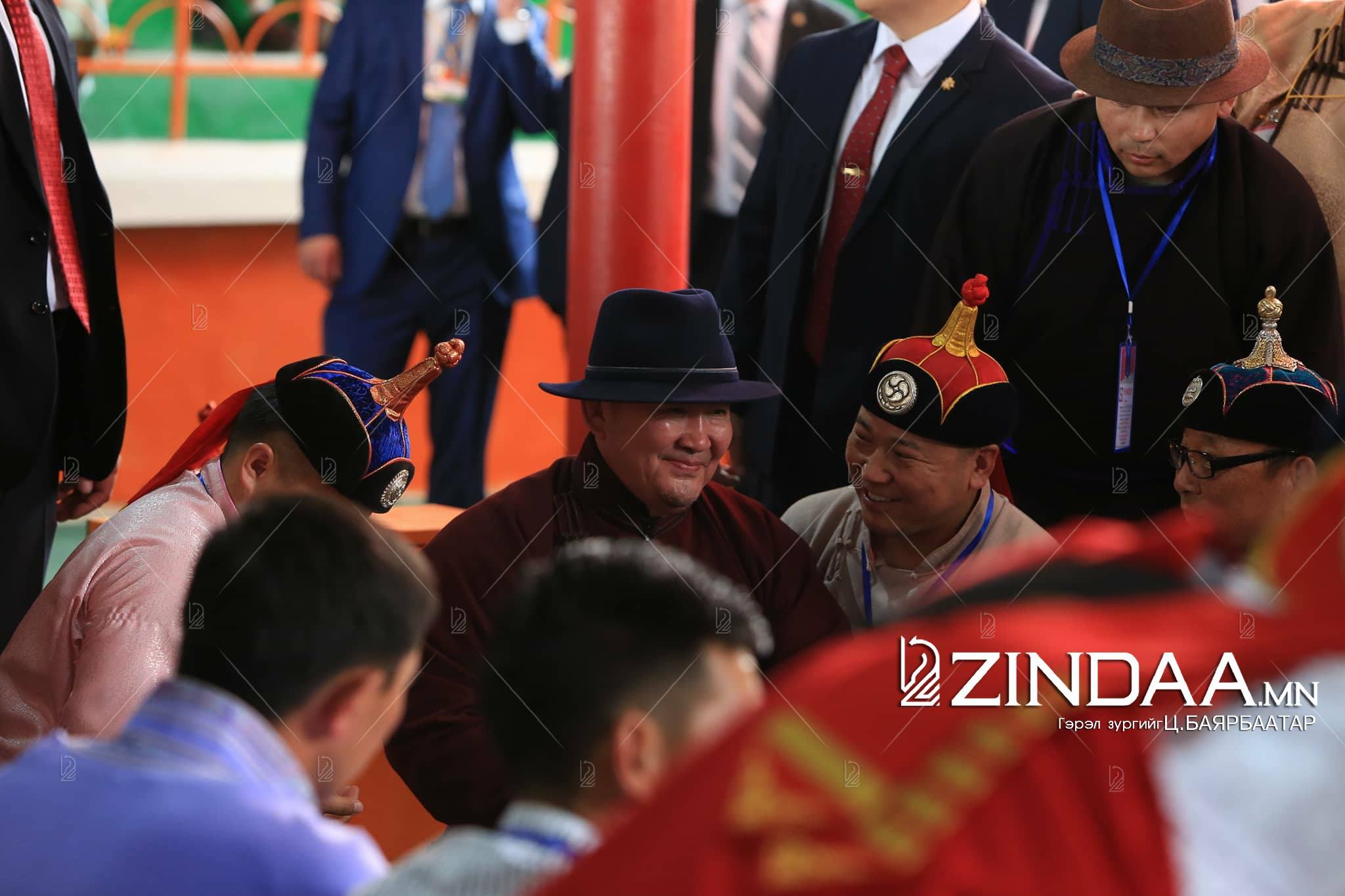 Уламжлалын дагуу төрийн өндөрлөгүүд сурын талбайд ирж, сум тавьдаг. Дөнгөж сая Ерөнхийлөгч Х.Баттулга, Ерөнхий сайд У.Хүрэлсүх, УИХ-ын дарга Г.Занданшатар нар сур, шагайн талбайд зочилж, цэц мэргэнээ сорилоо.